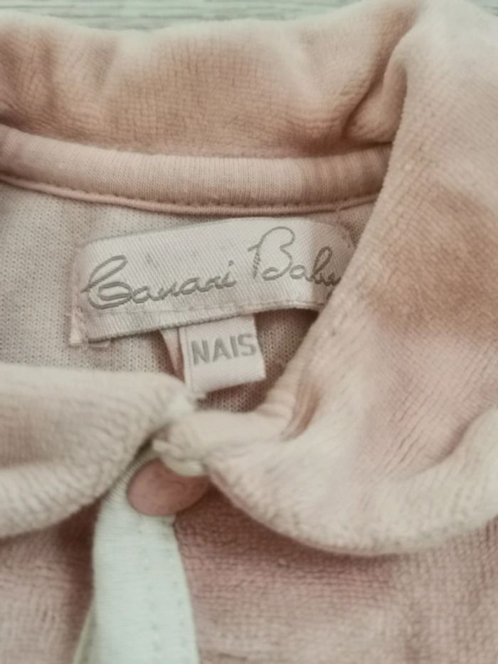 Pyjama rose naissance avec col et manches longues. Bon état. Marque Canari Baby. 85% coton.