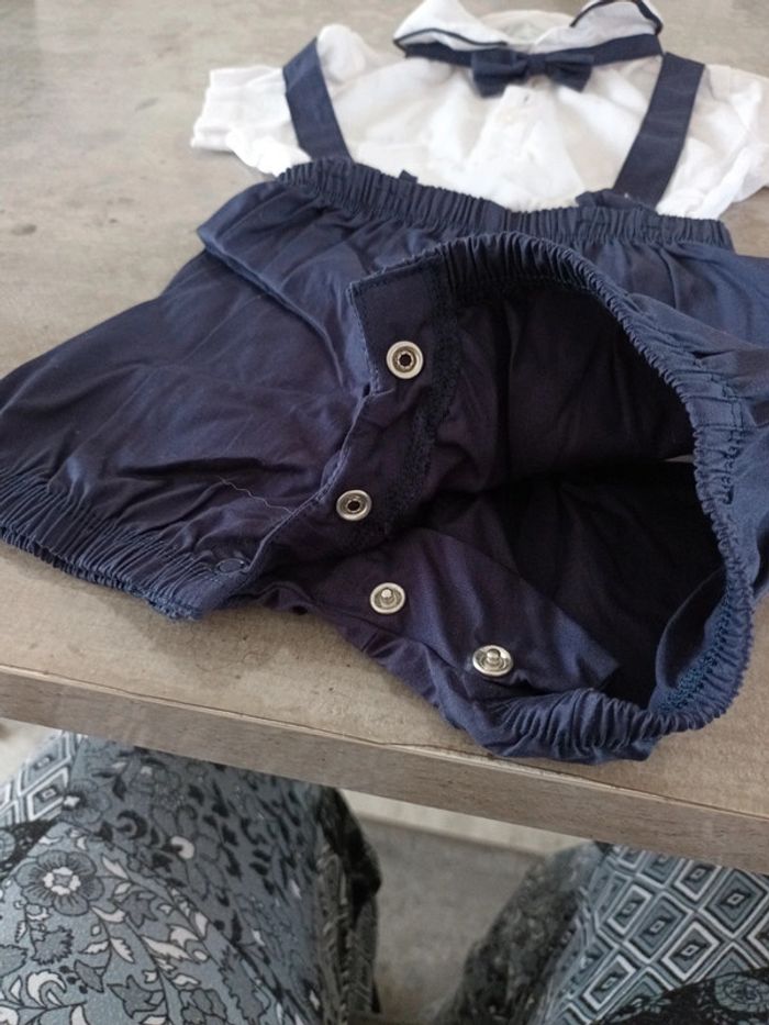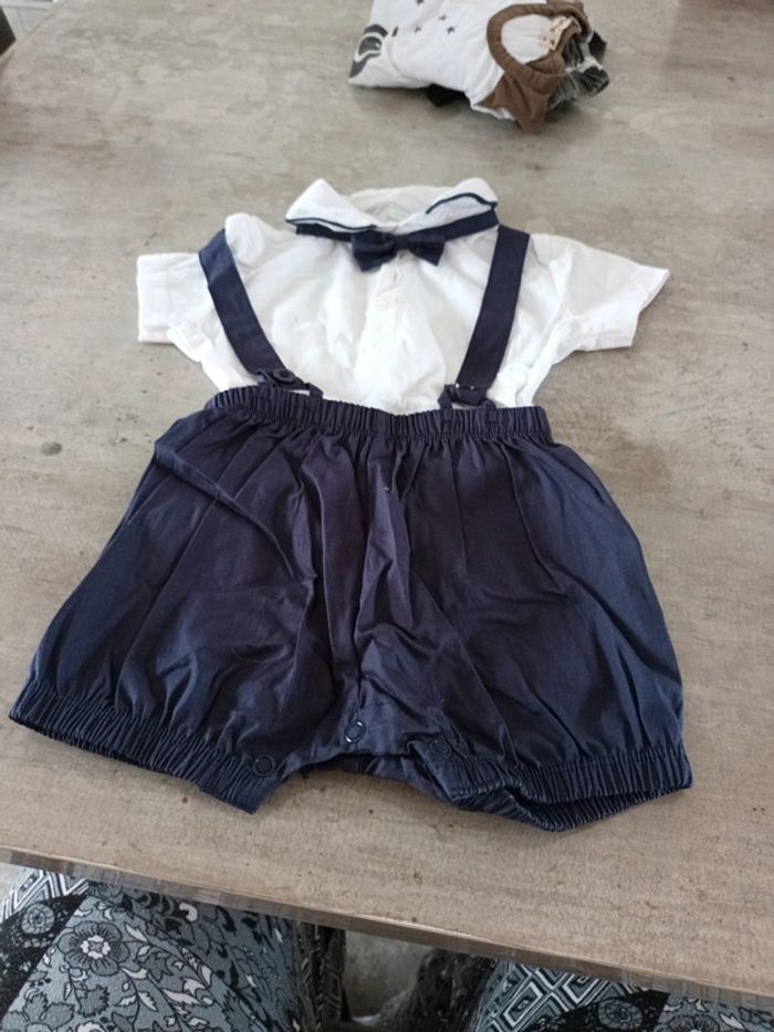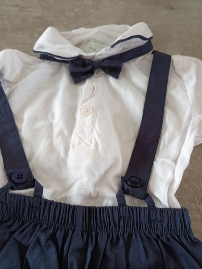 Ensemble salopette + polo léger + noeud papillon 9mois Très bon état