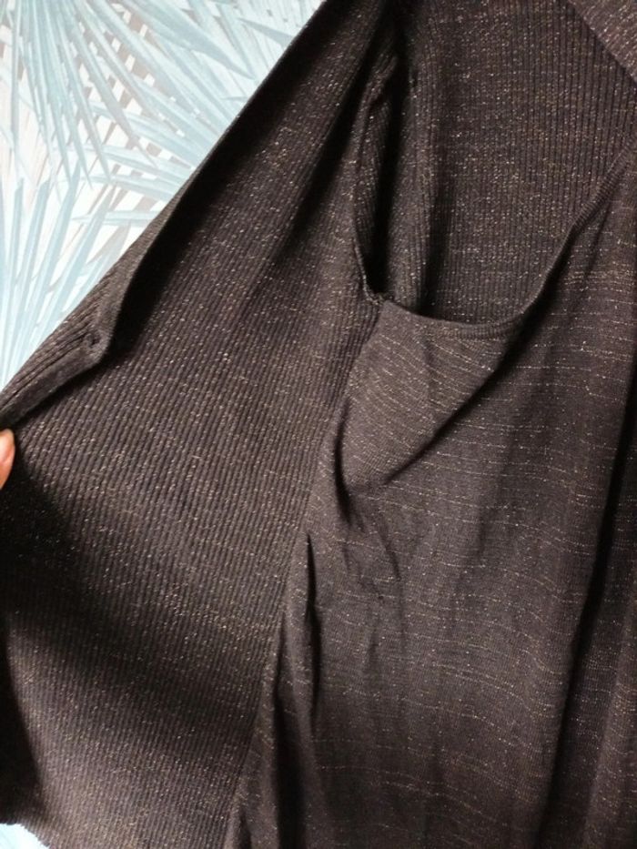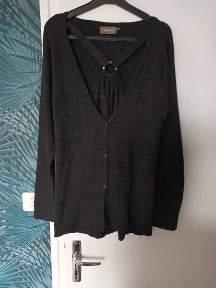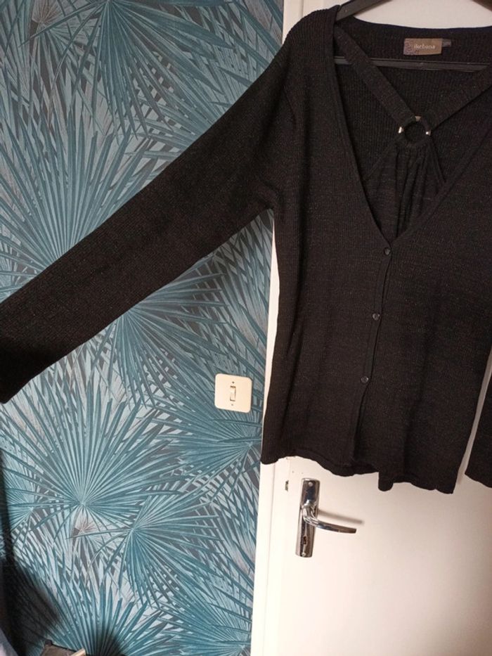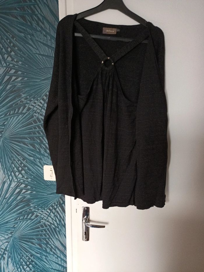 Haut noir a paillette assez lourd C'esr un débardeur gilet, ne peut etre séparer Porté 1 fois Taille 50/52