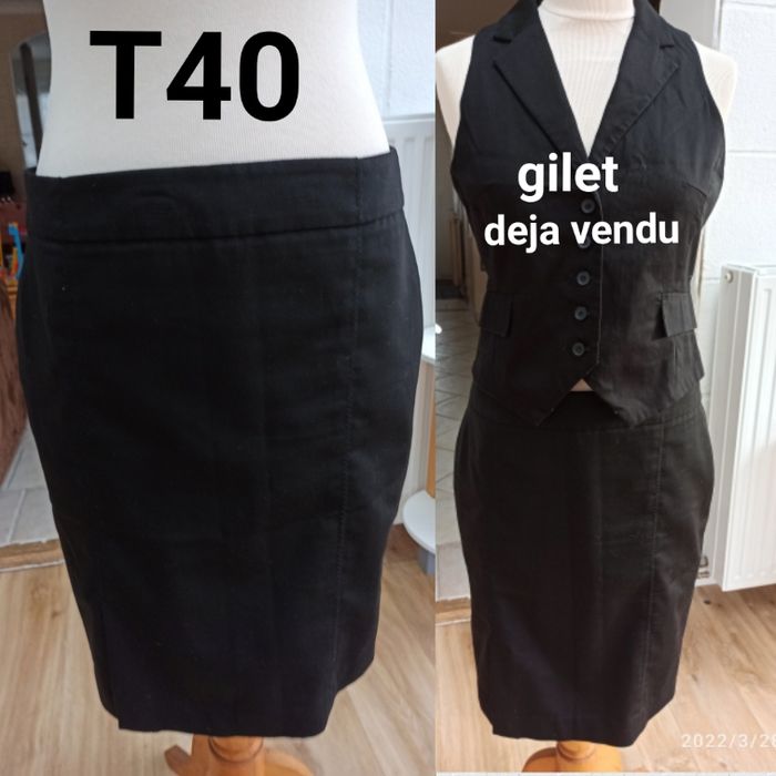 Envoi possible par mondial Relay ou shop to shop. Jupe noire Marque Etam Taille 40 Fendue à droite Mot clés : tailleur / étude de commerce / bts / iut / entretien d'embauche / restauration / école hôtelière ( le gilet à été vendu)