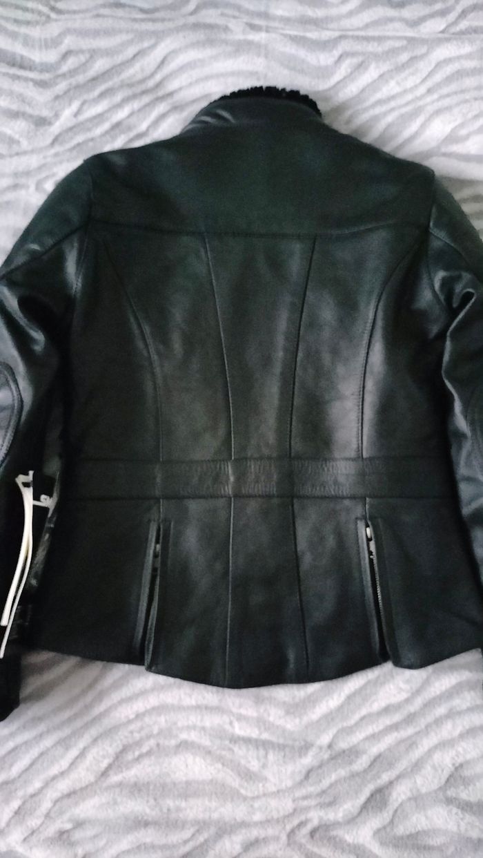 Veste comme neuve en cuir marron très foncé avec coques aux coudes et épaules (amovibles), col fourrure (amovible), sous-veste intérieure (amovible) et plusieurs poches intérieures et extérieures. Réglables aux manches et au dos. Avec notice. Retour refusé.