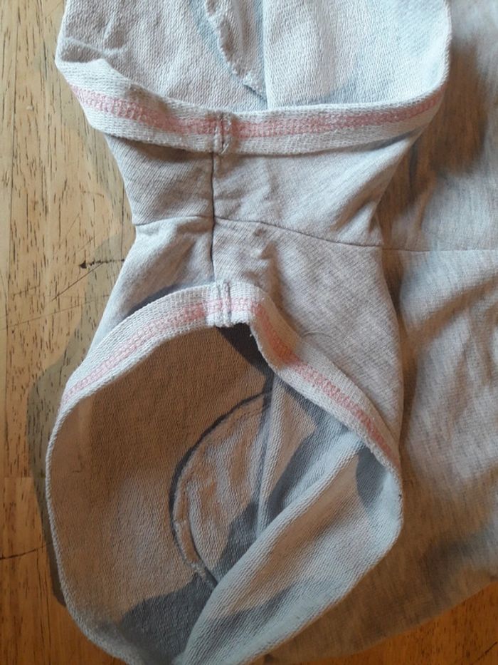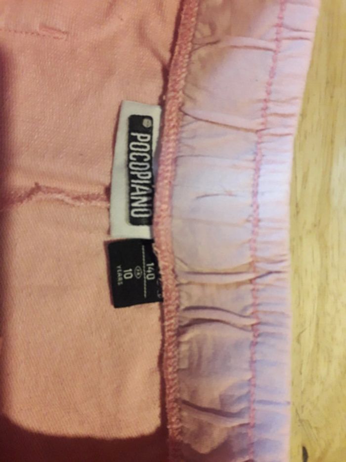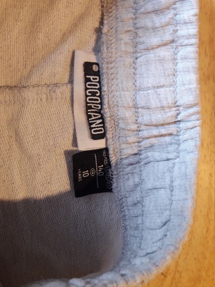 Le premier de couleur gris à liseré rose et le 2eme couleur dégradé rose. Taille élastique avec poches à l avant. Taille 10ans.