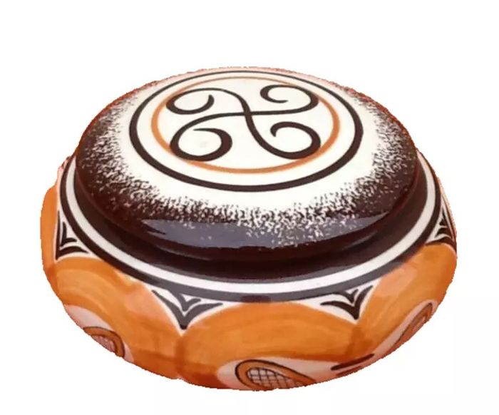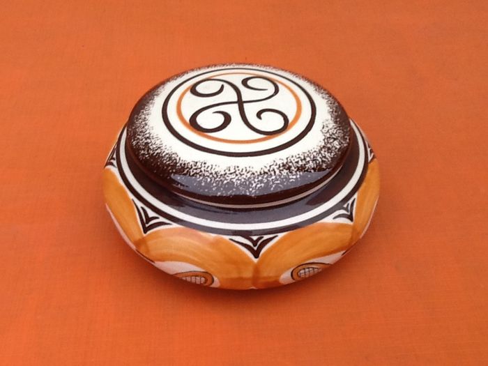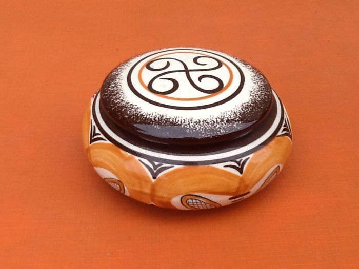 Bonbonnière / Boite à bijoux Faïence M.B.F.A (Manufacture Bretonne de Faïences Artistique) Décoré main Diamètre : 125cm Hauteur : 60mm Poids : 330grs