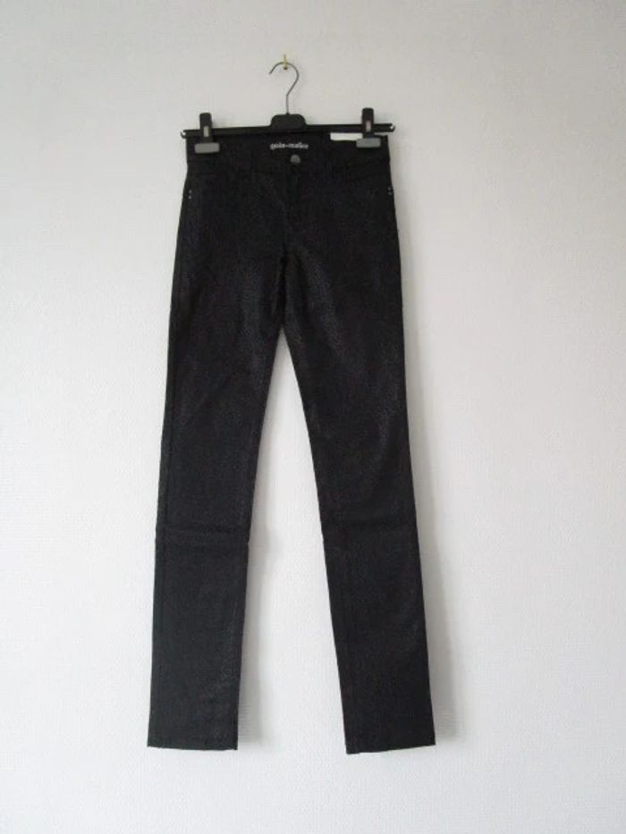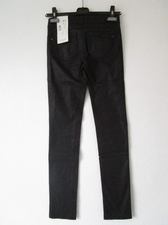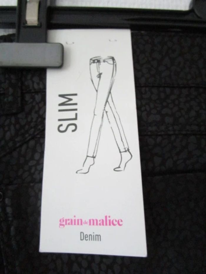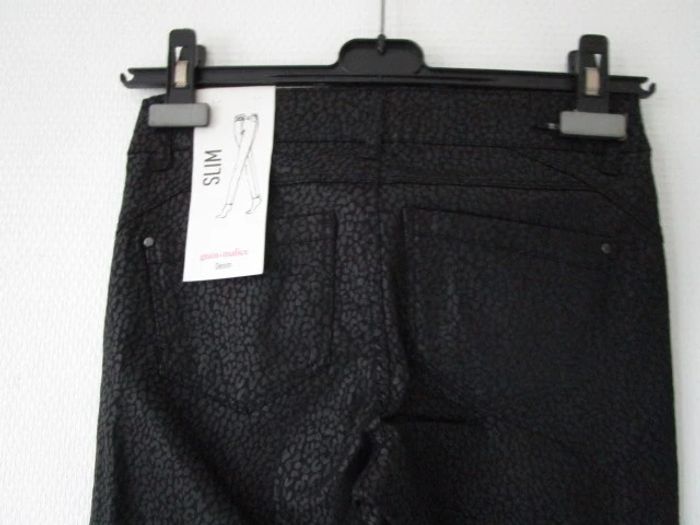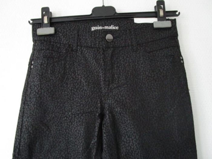 Pantalon slim noir imprimé léopard de marque Grain de Malice taille 34 Effet huilé 98% coton/2% élasthanne Largeur ceinture : 33.5 cm Longueur : 97.5 cm NEUF avec étiquette Prix boutique : 39.99 euros #mamanbrade59femme34