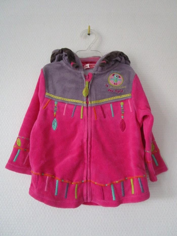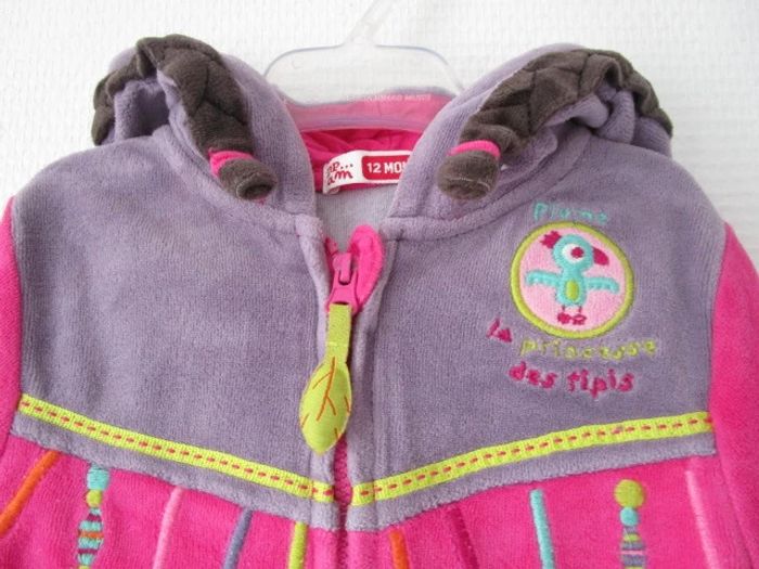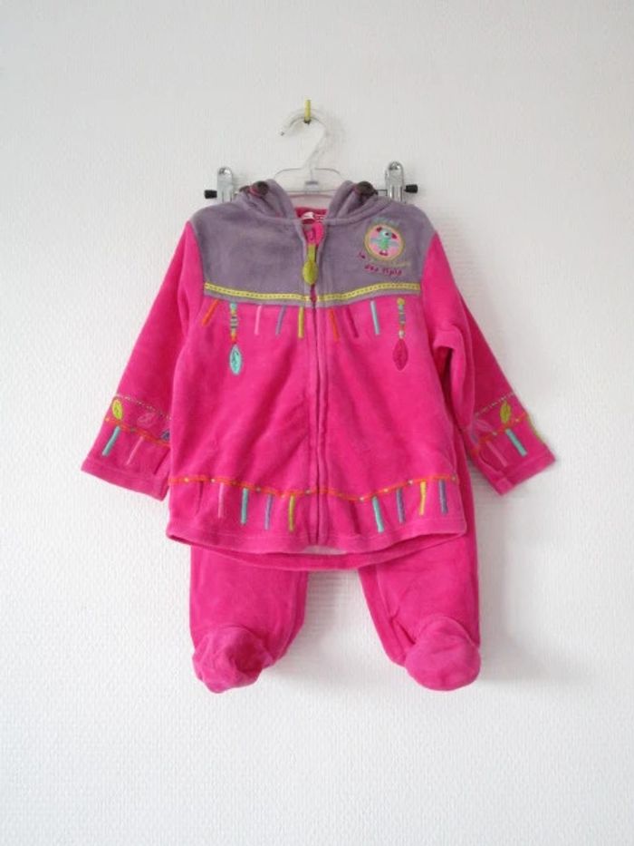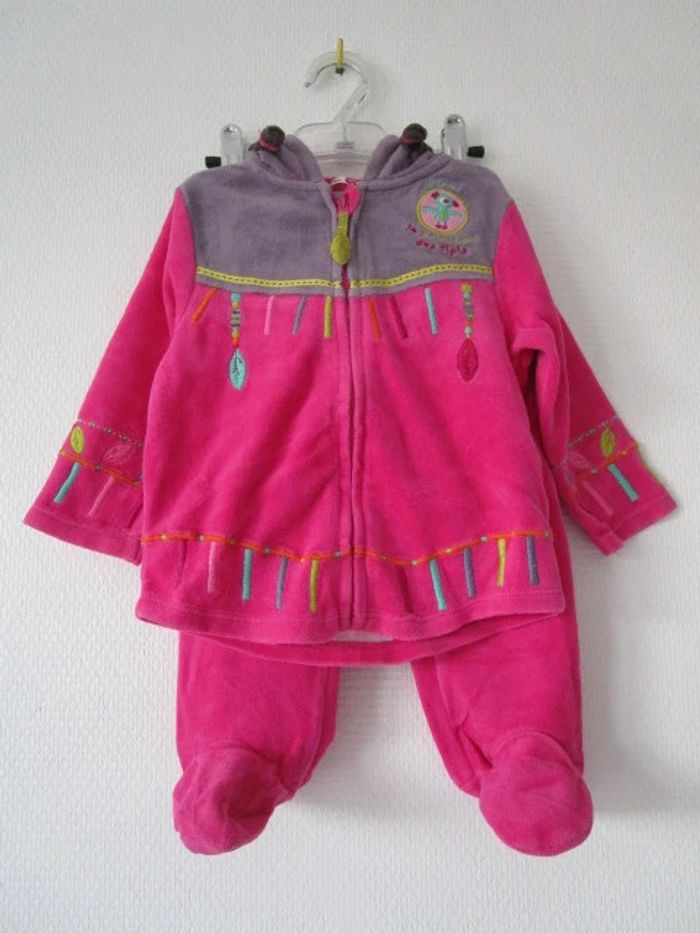 Pyjama 2 pièces de marque Du Pareil Au Même taille 12 mois Fuchsia avec veste à capuche indienne Le bas et le haut peuvent s'accrocher ensemble En très bon état #mamanbrade59fille12mois