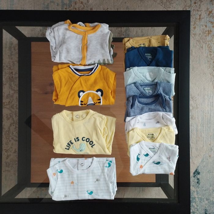 Lot pyjamas fins + bodies manches courtes 1 mois