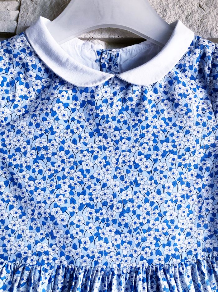 JACADI - ROBE BÉBÉ FILLE IMPRIMÉ LIBERTY TONS BLEUS & VOLANTS AUX POIGNETS 12M - photo numéro 7