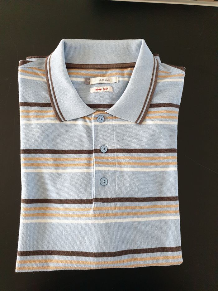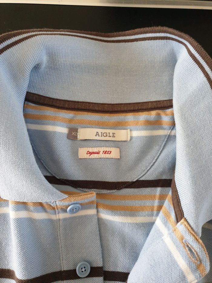 Polo bleu ciel à rayures – Aigle – XL - photo numéro 1