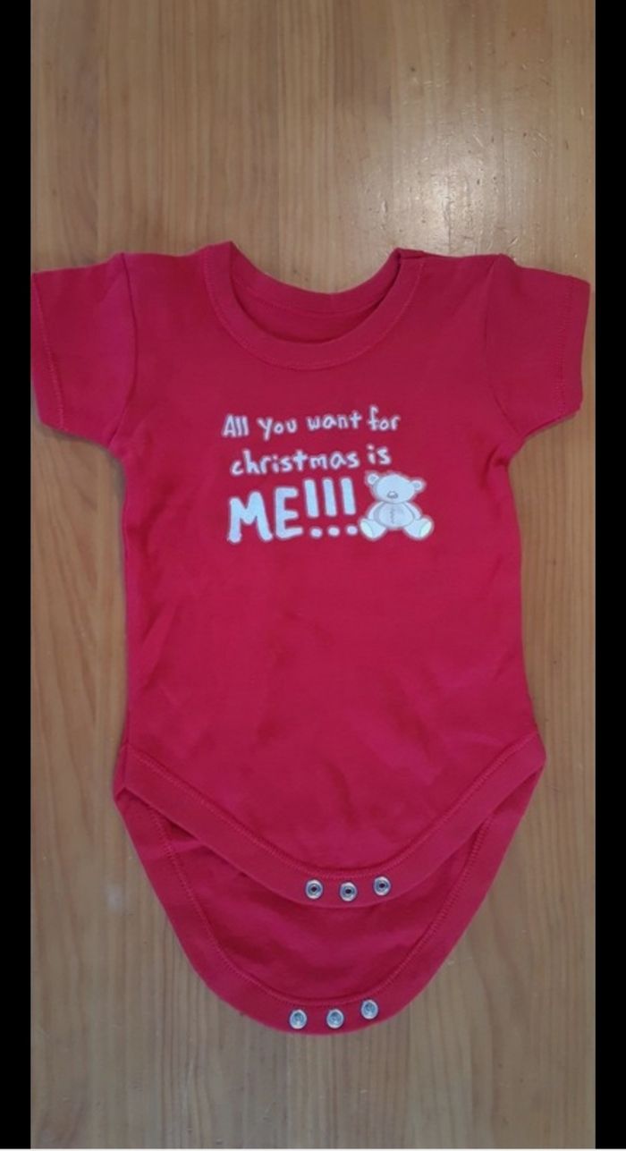 Je vends un jolie bodie à manches courtes de la marque St Bernard. Taille 6-9 mois Coloris rouge vif flocage thème Noël/ourson Col rond Fermeture par pressions à pressions Mixte Jamais porté, état neuf.