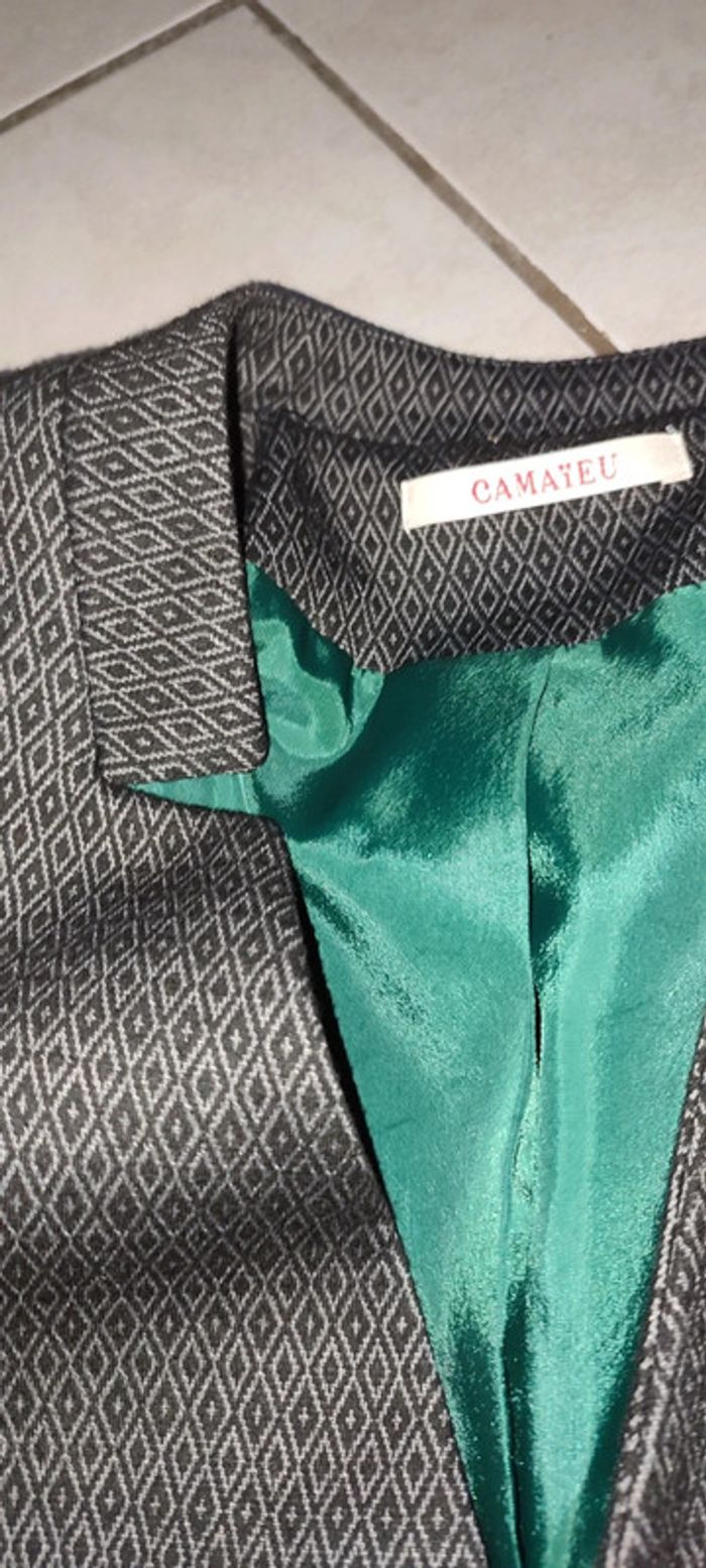 Veste tailleur marque camaïeu avec petit motif très discret mais qui retire le côté classique de ce type de veste unis Taille S