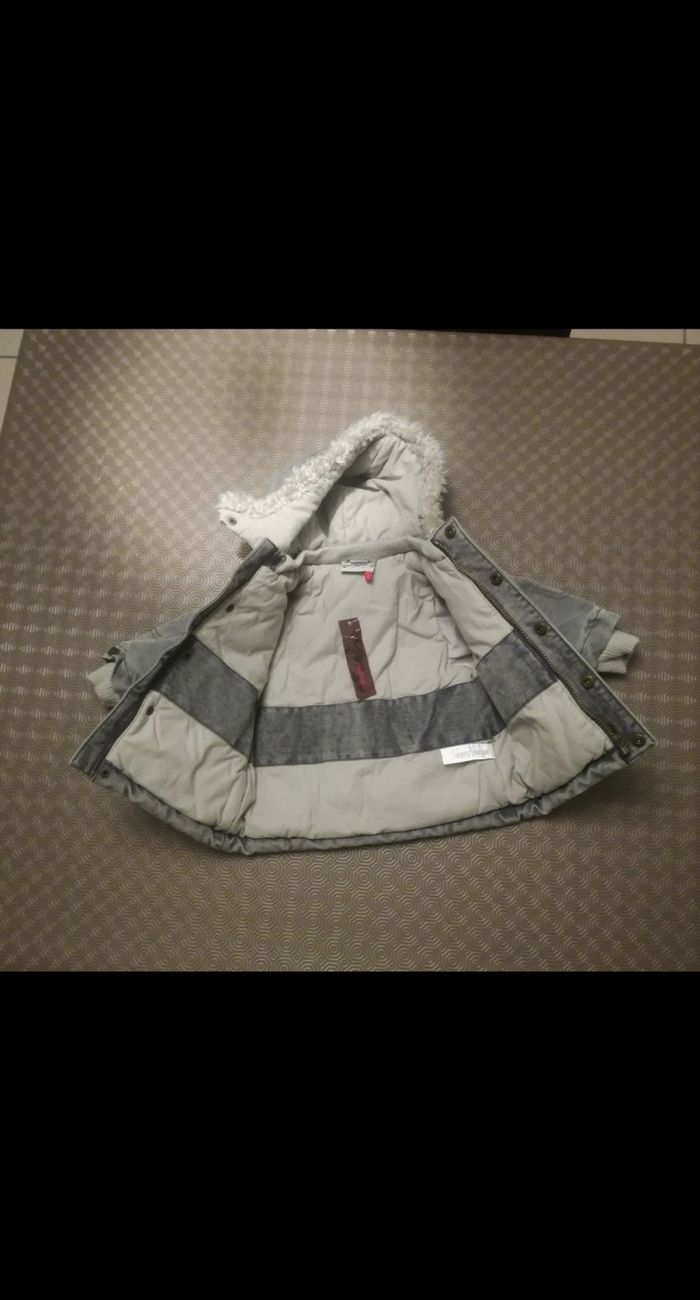 Je vends une très jolie parka d'hiver de la marque Catimini avec capuche. Taille indiquée : 6 mois 67 cm Coton majoritaire, polyester et fourrure de la capuche acrylique Tissu extérieur imperméable Coloris gris genre noir délavé Doublure chaude matelassée Capuche amovible avec pressions Fermeture par zip et pressions 2 poches devant Finition des poignets resserrée Jamais porté, neuf avec étiquette. #neufavecetiquette #parka #parkaenfant #catimini #catimini6mois #coton #hiverenfant