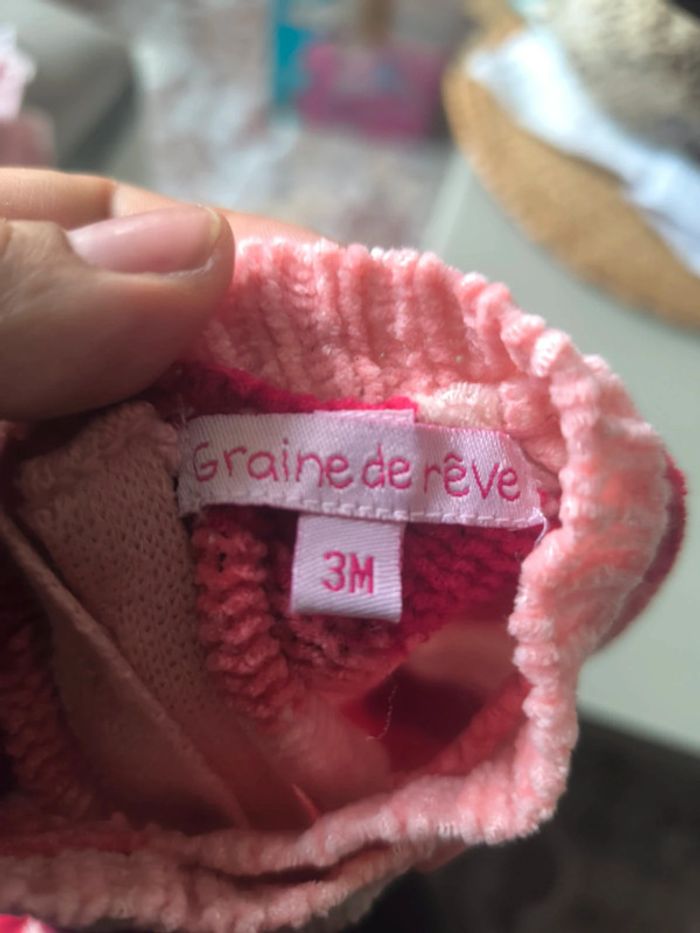 Marque graine de rêve Très bon etat Peu porté Déclinaison de roses et blanc en rayures Taille 3 mois Envoi rapide Beaucoup d'argiles en 3 mois dans mon dressing Et lots également