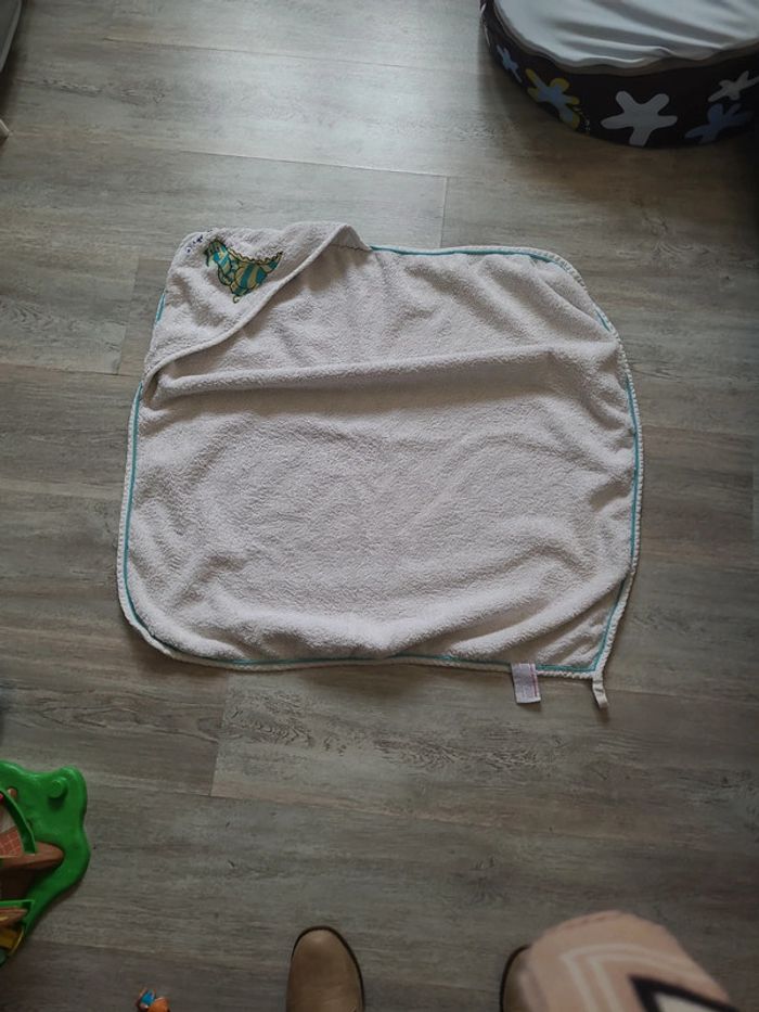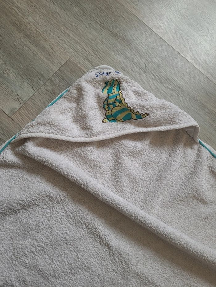 Cape de bain CARRE BLANC motif dinosaure (légère trace plus foncée à l'arrière)