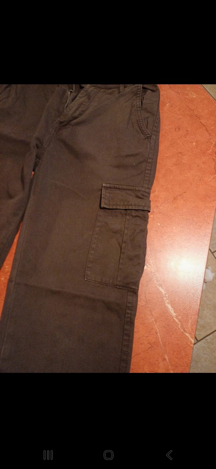 Pantalon straight marron . Marque du téléphone sur poche arrière