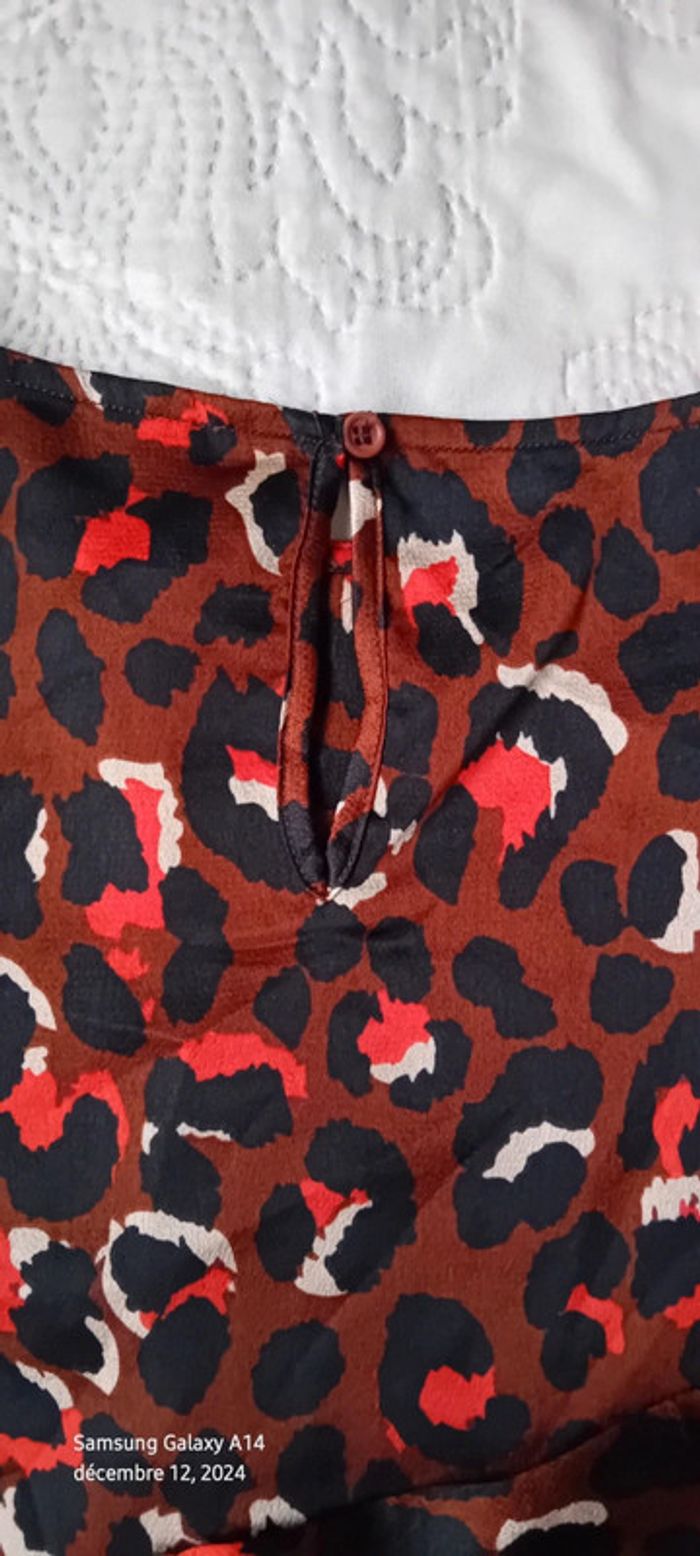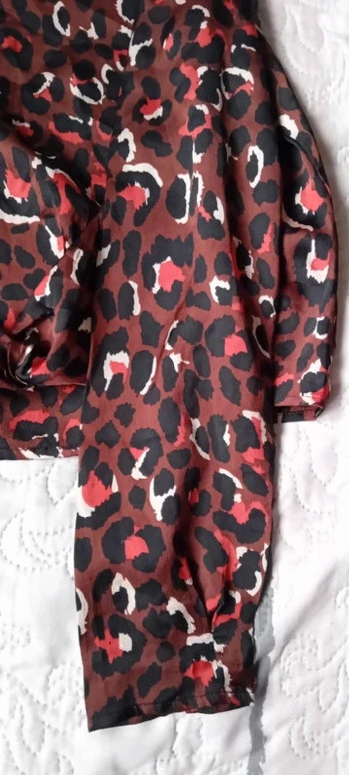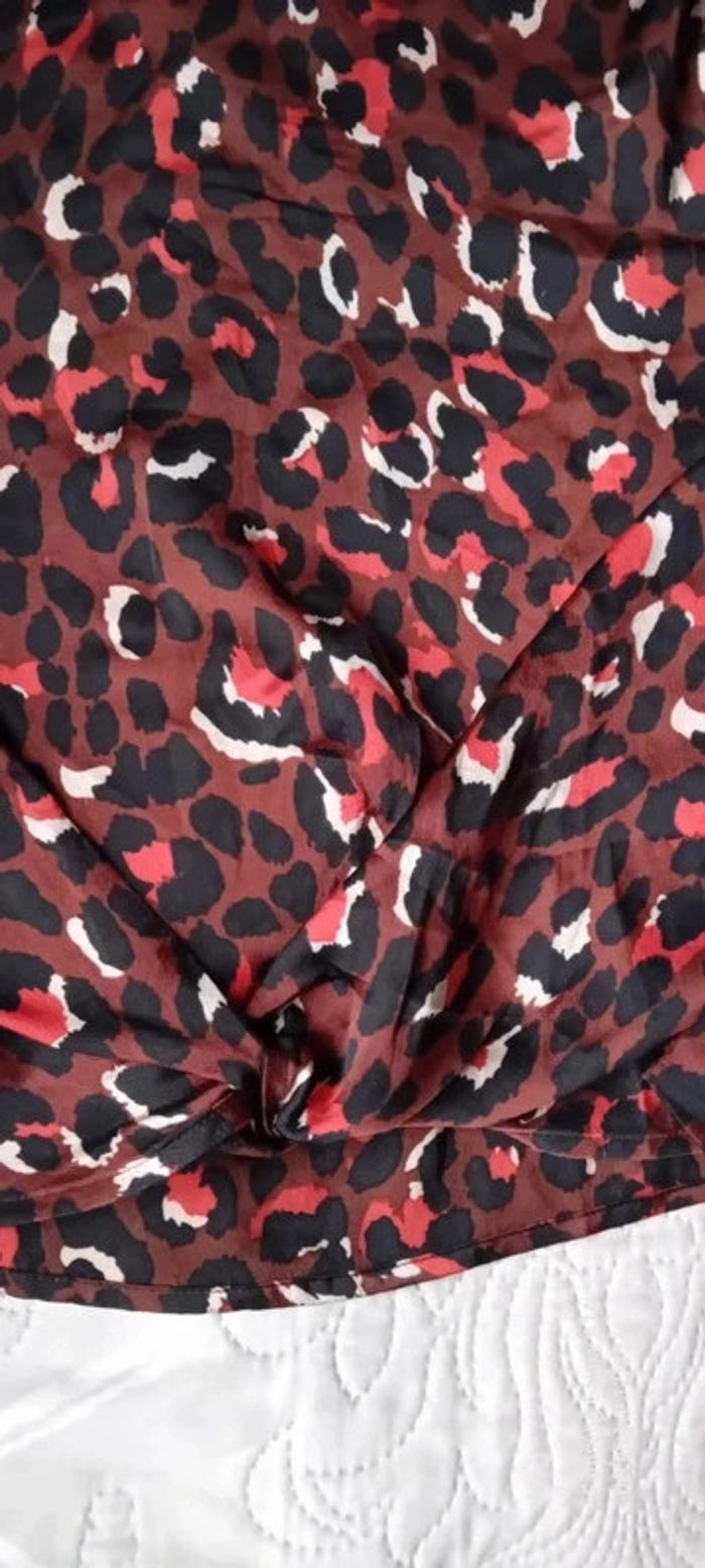 Blouse style Margot fluide satiné motif léopard marron noir femme M - photo numéro 4