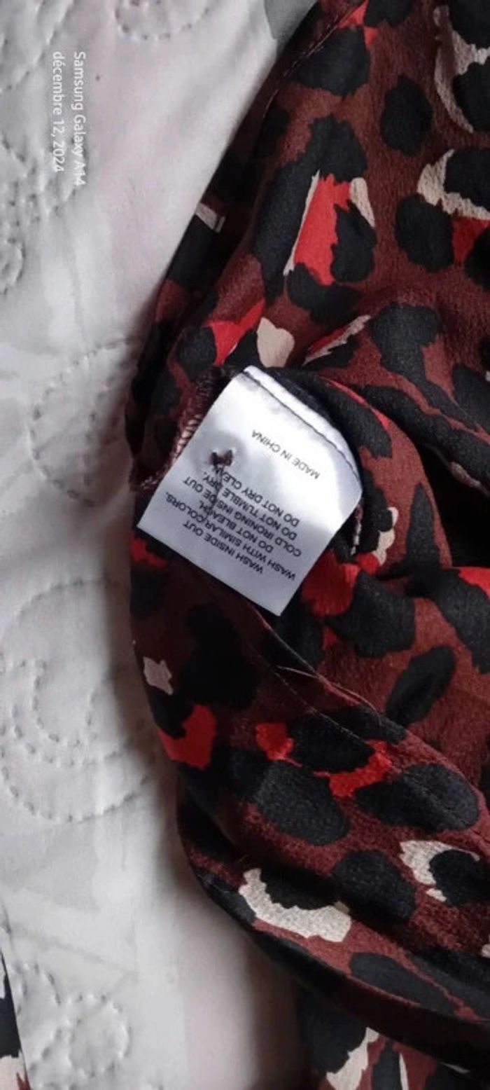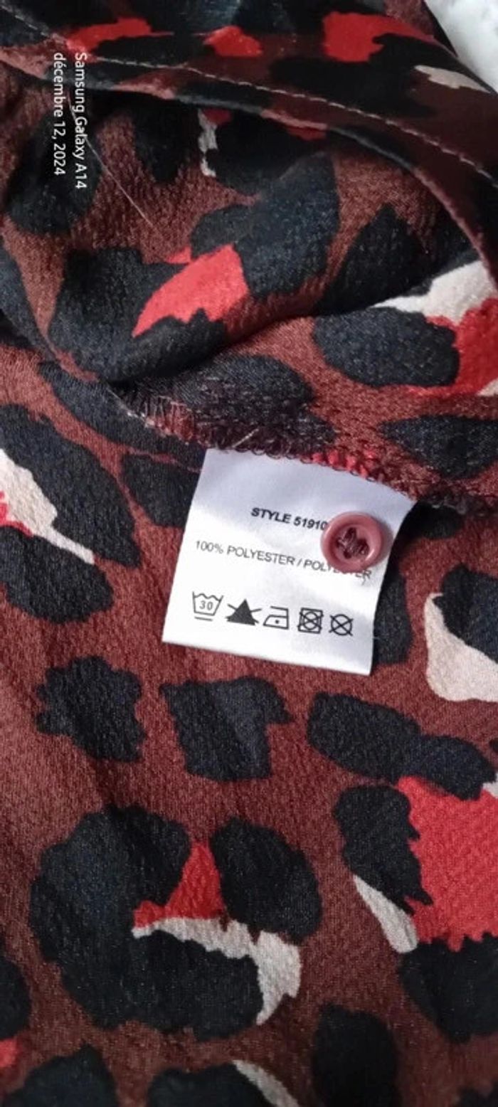 Blouse style Margot fluide satiné motif léopard marron noir femme M - photo numéro 14