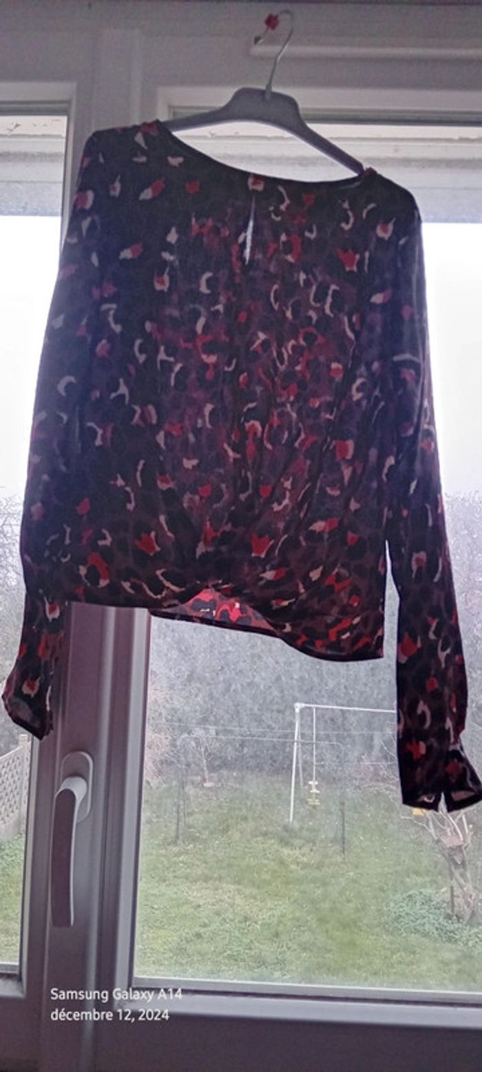 Blouse style Margot fluide satiné motif léopard marron noir femme M - photo numéro 2