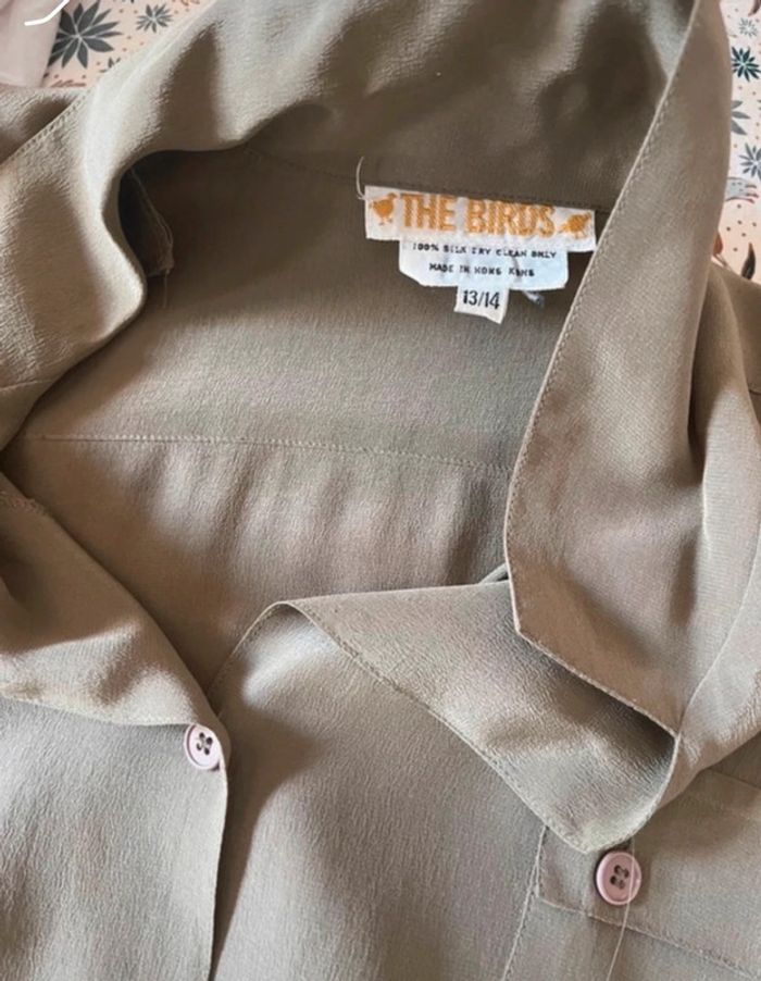 Blouse en soie vert kaki Vintage The Birds 38 M - photo numéro 1