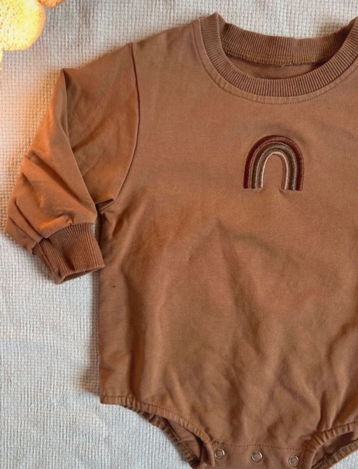 Barboteuse sweat-shirt marron mixte 74 - photo numéro 3