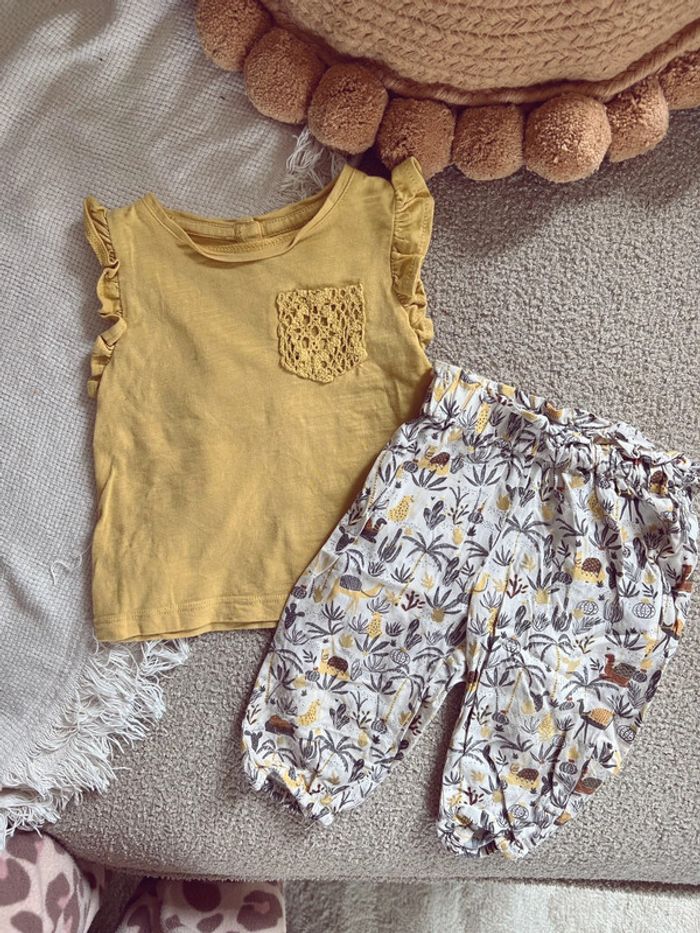 Ensemble gemo moutarde et pantalon fluide motif
