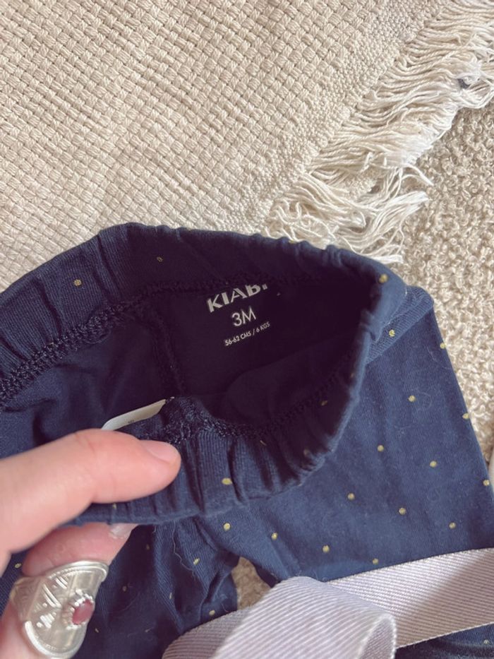 Tous très bon état Le pantalon est un tape à l’œil en 3 mois Les 3 leggings kiabi