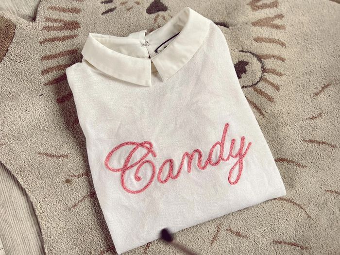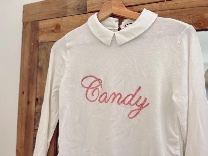 Porté une fois comme neuf Taille s L’avant et en matière petit pull fin et l’arrière en voilage
