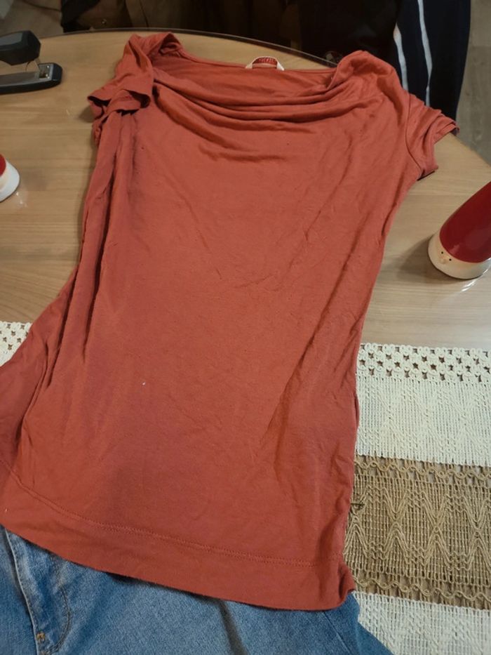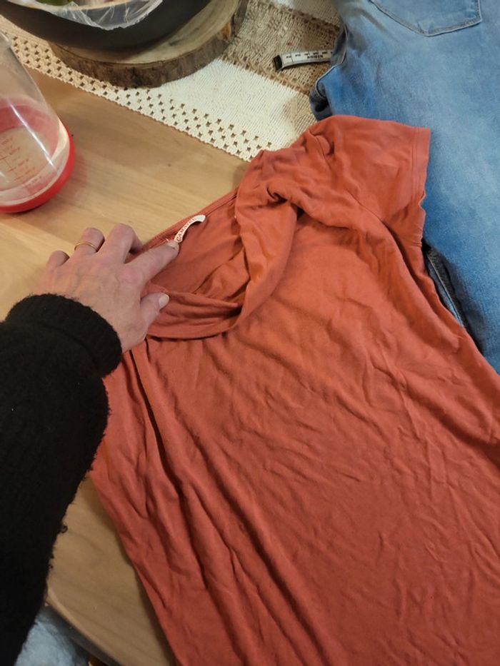 Skinny de Kiabi t S (ou 16 ans) Bon etat Peu porté + haut col plongeant vieux rose / corail Camaieu t1 D2