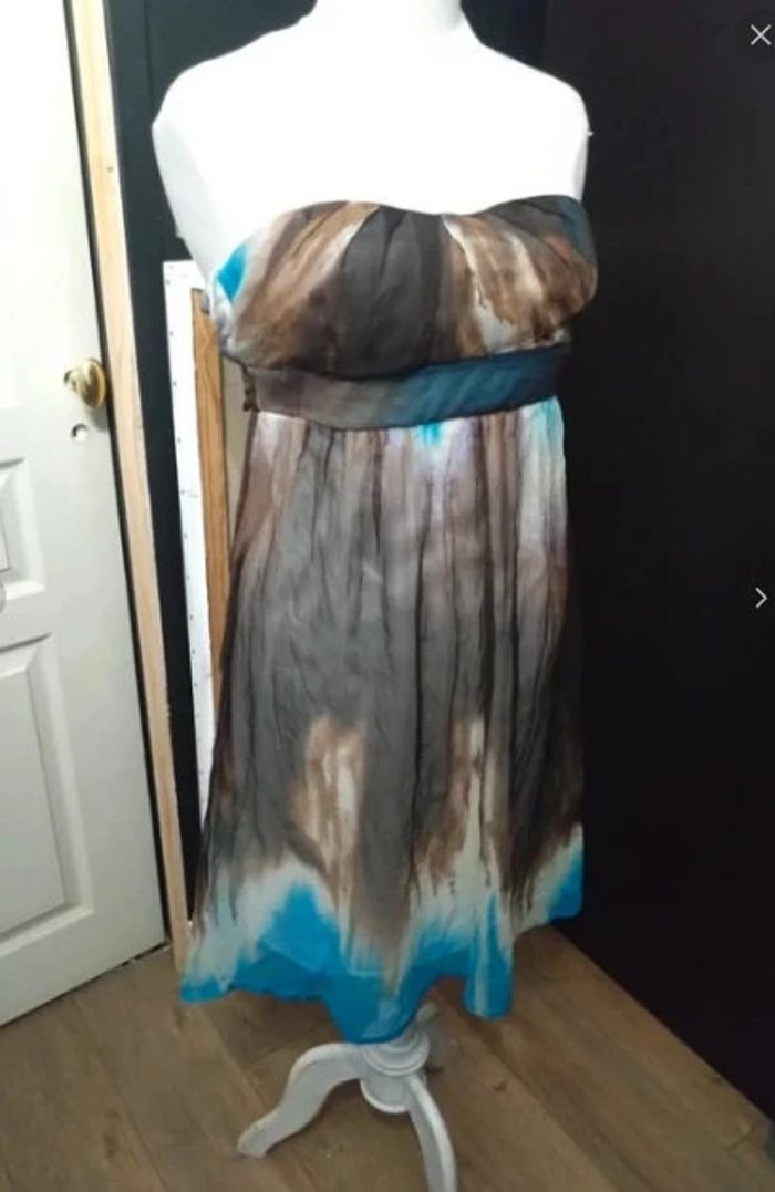 Très bon état Voile de soie bleu et marron Parfait pour mariage, noel, réveillon, nouvel an, gala, cérémonie, cocktail, soirée, d'été baptême