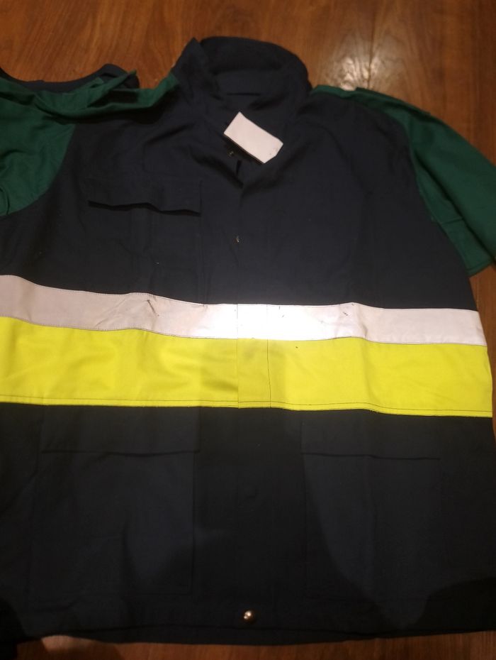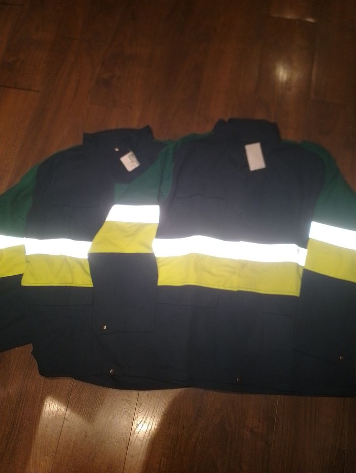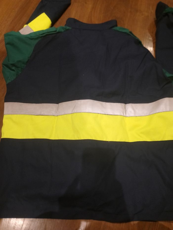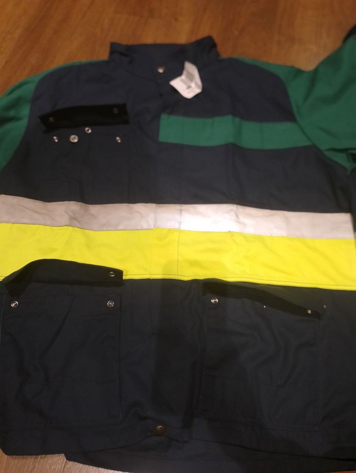 Veste de travail réfléchissante MOLINEL neuve 50 euro pièce - Taille 4 - Avec 2 grandes poches à pression et 1 grande en haut - Avec bande réfléchissante tout le tour et au niveau des bras - 2 poches intérieures 1 de chaque côté (1 avec pression et l'autre a scratch) - 2 bandes avec scratch au niveau des épaules - Col légèrement montant fermer par 1 pression - Pressions au niveau des poignée réglable 2 tailles Vendu en l'état