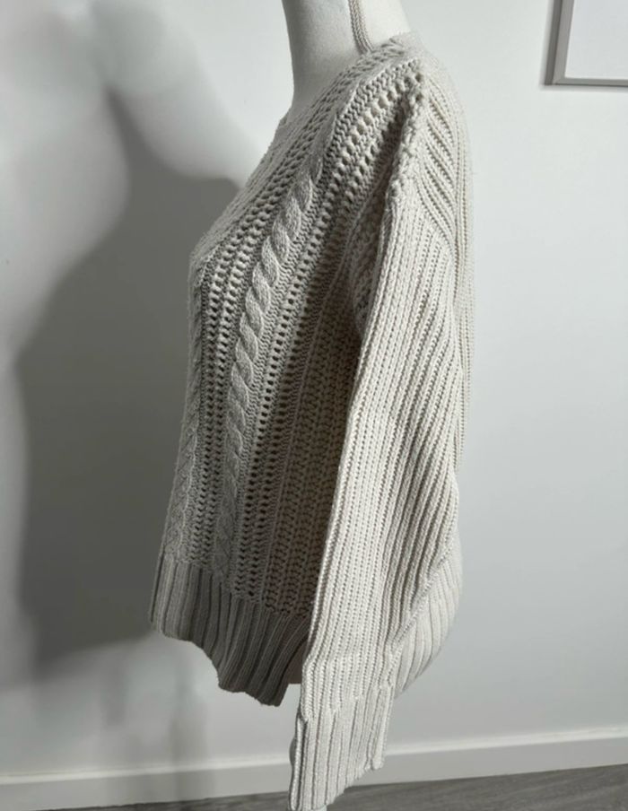 Pull - Excellent état - Taille 38 équivalent M - Couleur gris clair - Vintage, années 80-90' - Mailles torsades - Ultra doux et chaud - Col rond - Plus d'étiquette de taille ni de matière