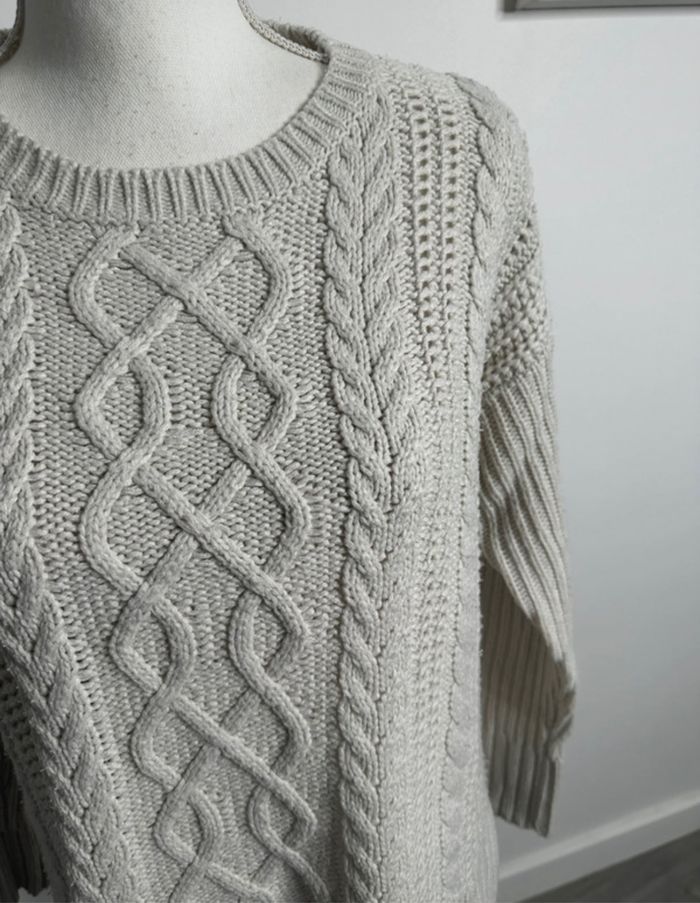 Pull en mailles torsades gris clair Vintage T38 M - photo numéro 2