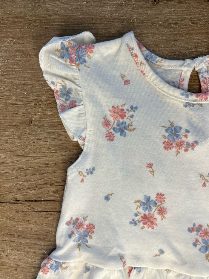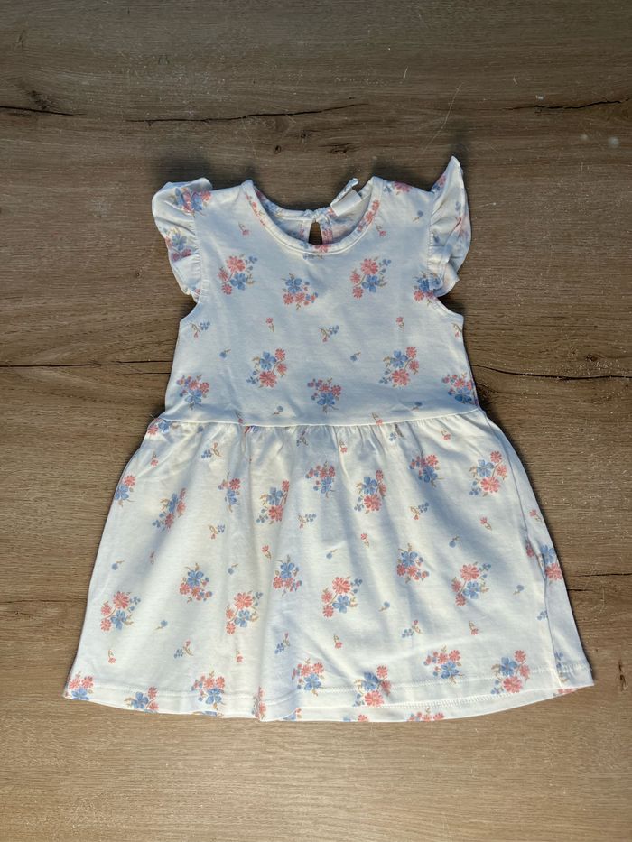 Jolie robe à motifs fleuris, volants au niveau des manches H&M taille 6-9 mois (74cm) Neuve