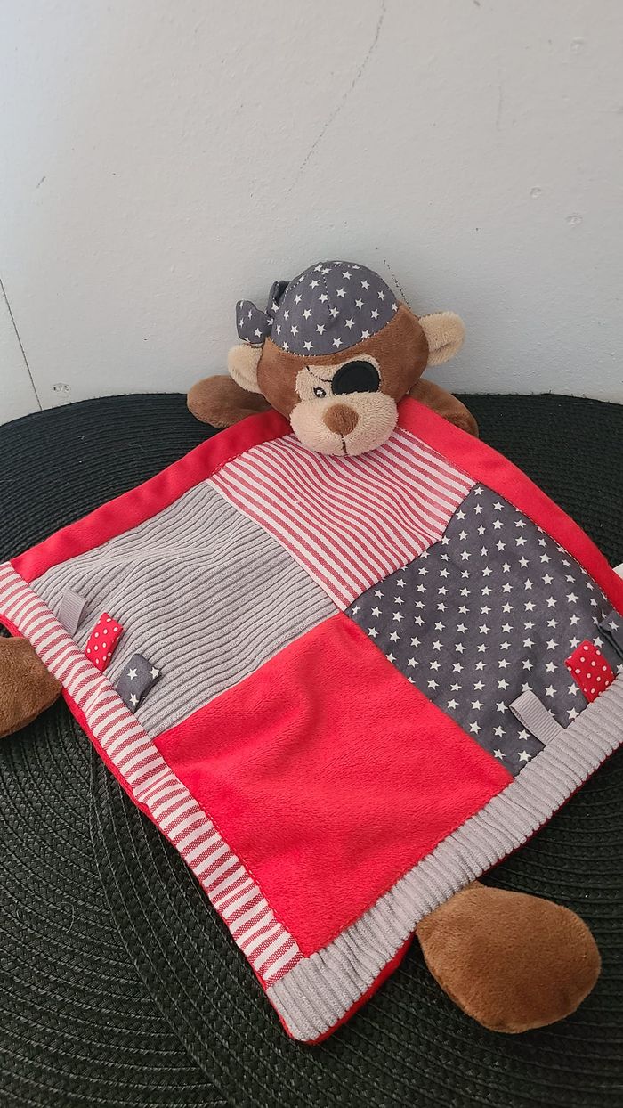 DOUDOU LA GALLERIA SINGE PIRATE GRIS ROUGE MARRON RAYÉ ÉTOILE - photo numéro 1