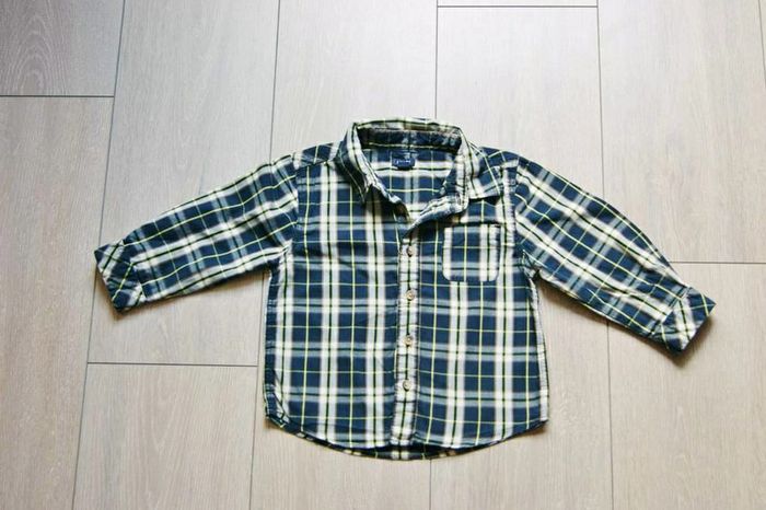 Chemise noir et jaune. Garçon 24 mois. Marque Kiabi