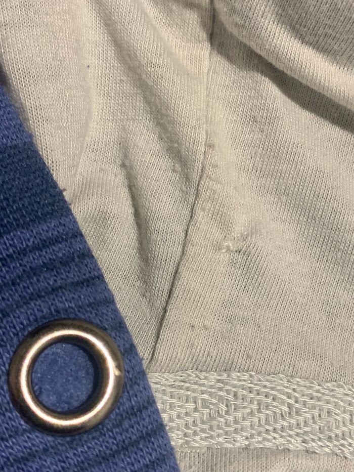 Sweat avec capuche bleu Test 4 ans couleur bleu rayé avec capuche doublé, manches longues 35% coton 65% polyester. Poignets en bord-côte. 2 poches sur le devant. Ouverture zippée à l'avant. *petite retouche à l'intérieur de la capuche, voir photos ⛔️ Prix FIXES, NON négociables 🚨 👏🏻 Réductions sur les lots 👍🏻 #vestegarçon #capuche #4ans #cc_garcon4ans