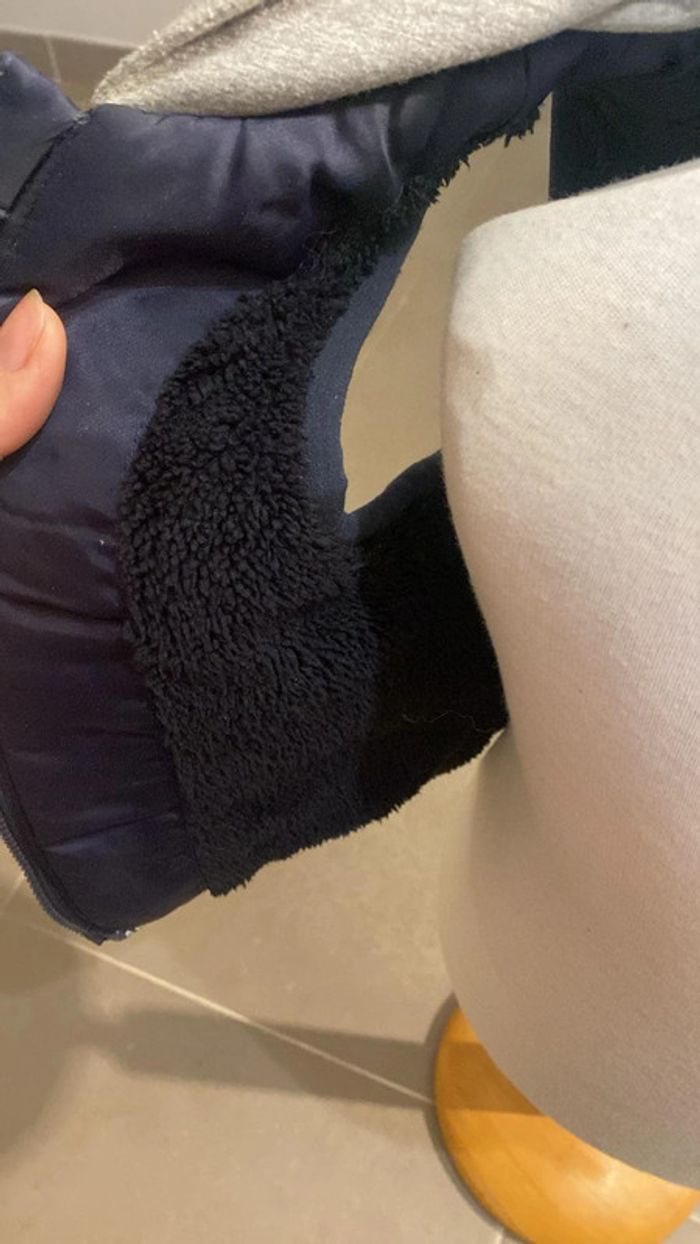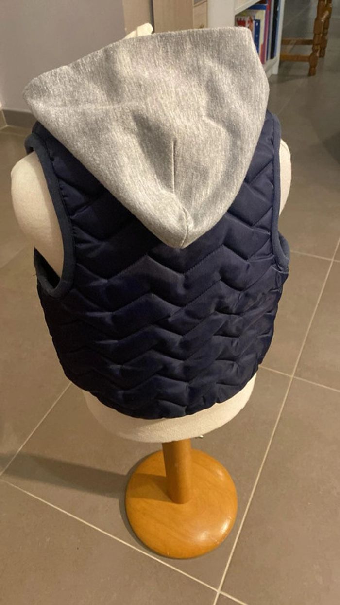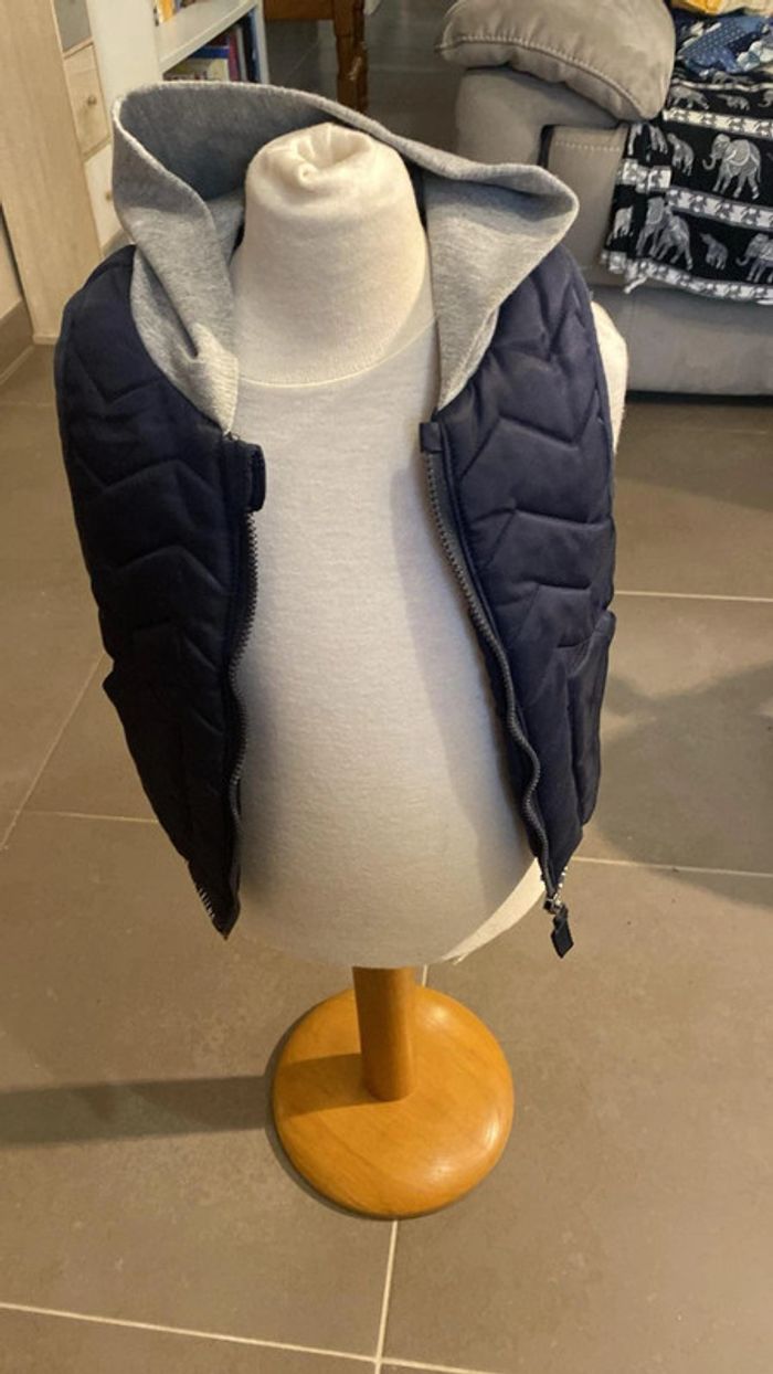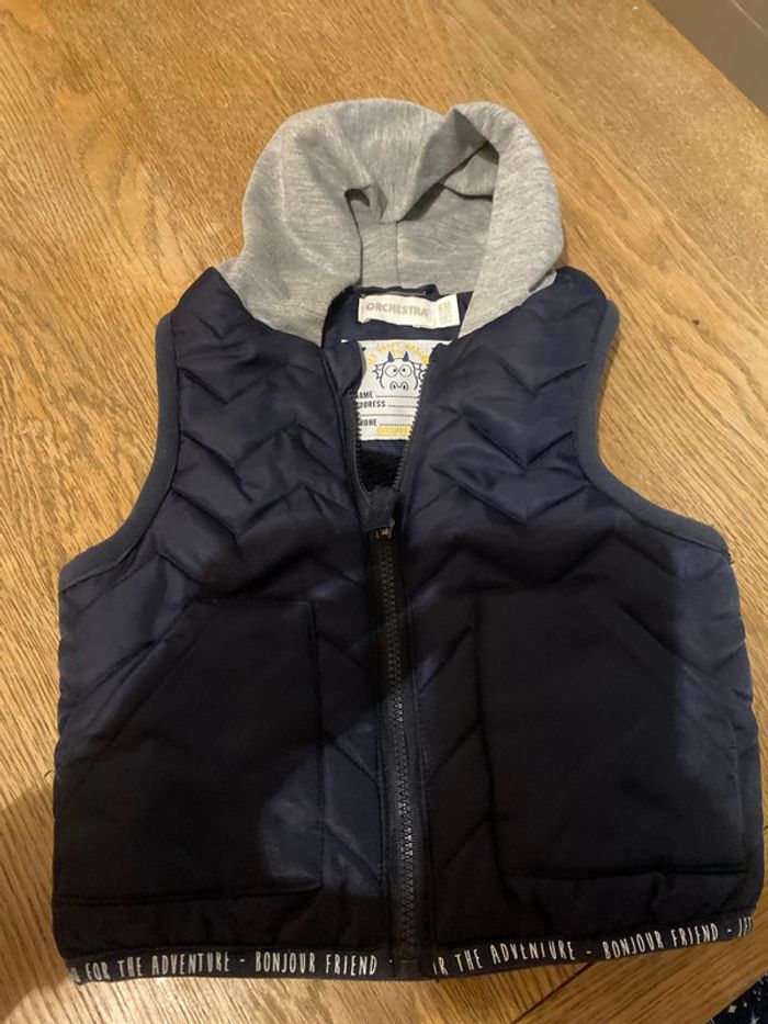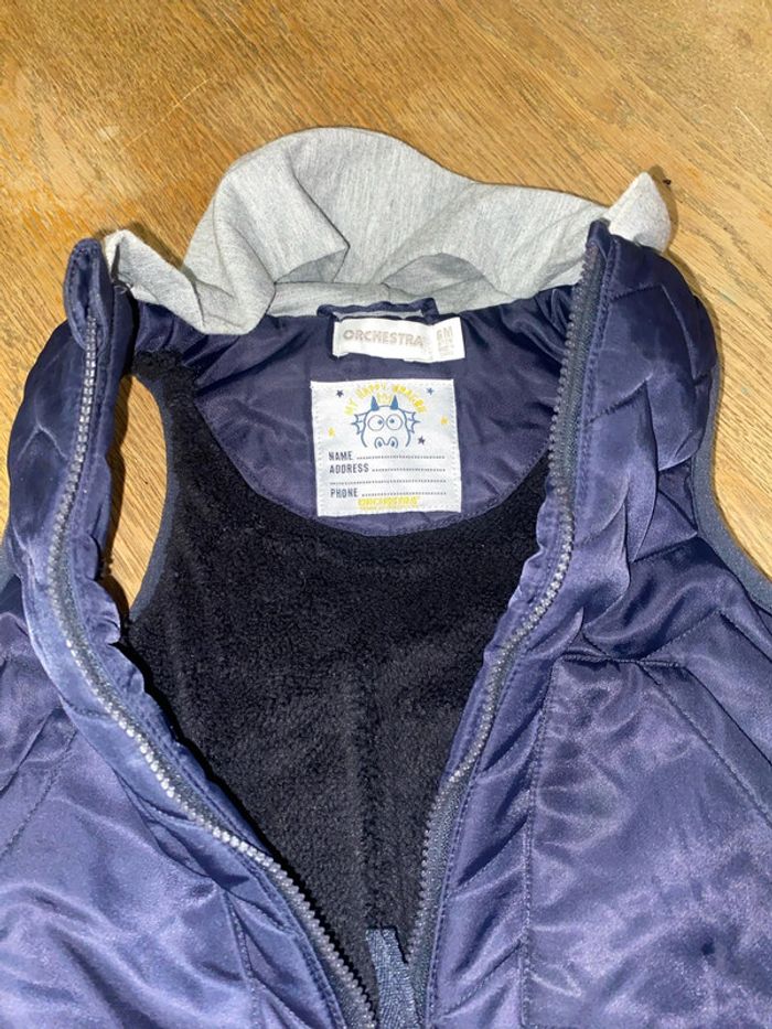 Doudoune sans manches Intérieur en sherpa Bleu avec une capuche légère grise Orchestra 6 mois Comme neuve Valeur neuve 25€99