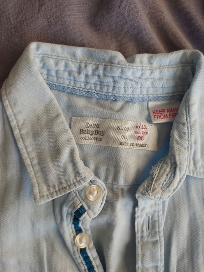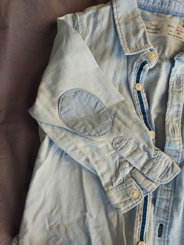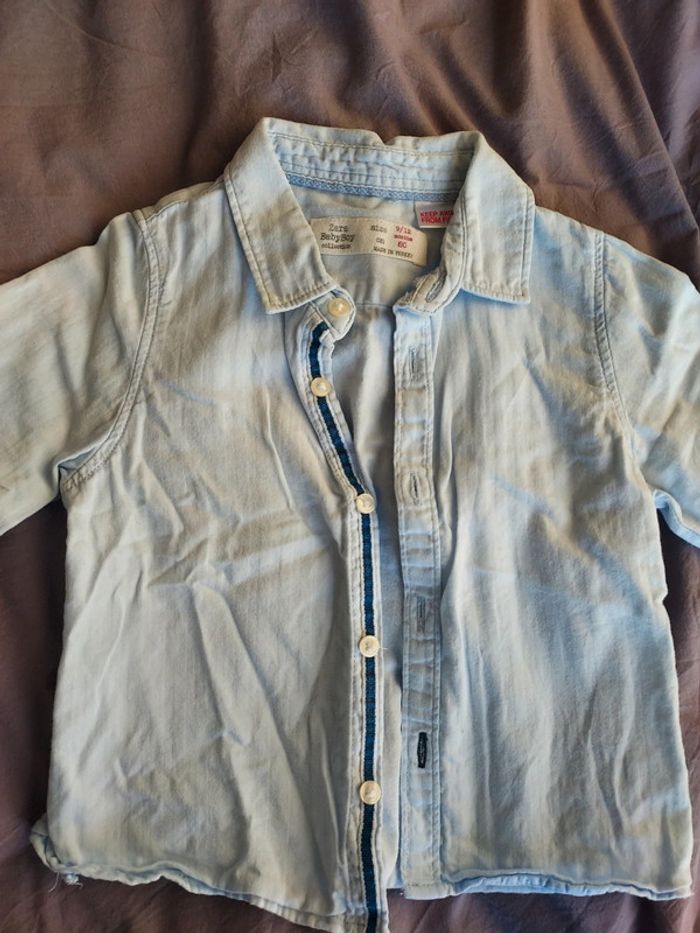 Chemise 12 mois Zara Manches longues Bleu ciel très pale Très bon état