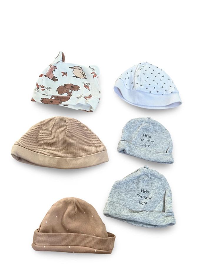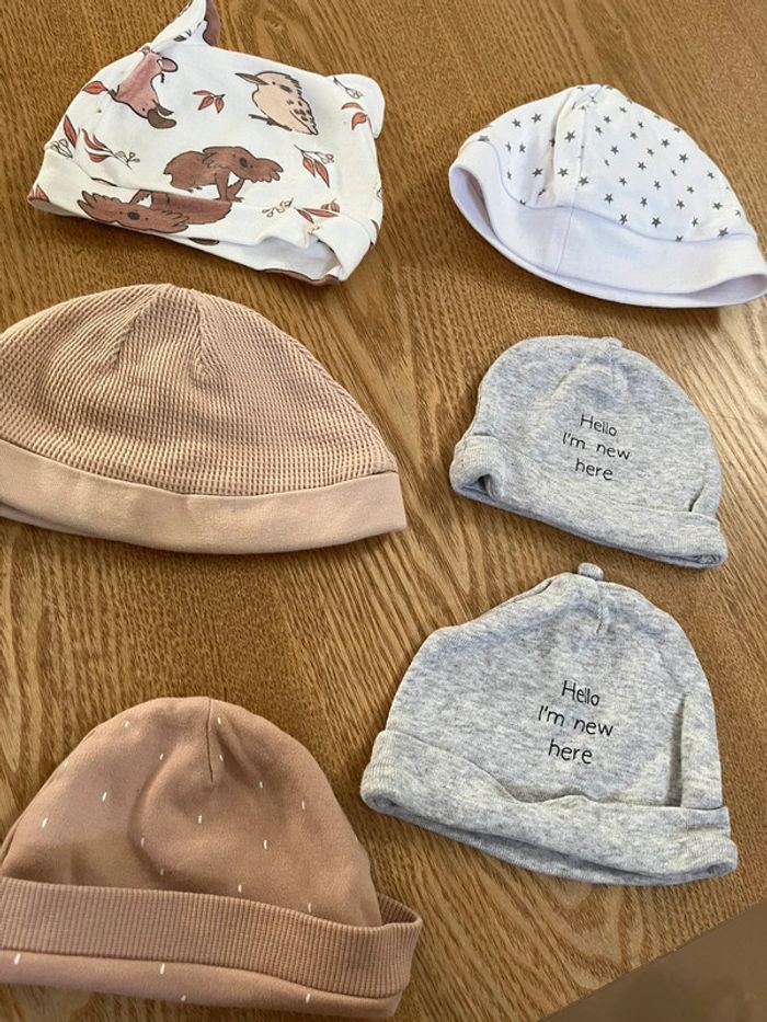 Lot bonnet bébé naissance , 1 mois , 3 mois Très bon état Blanc beige gris
