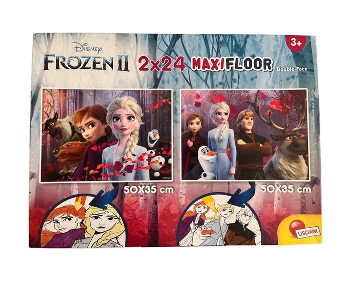 📃 description : puzzle 2x24 pièces reine des neiges 2, frozen II. 50x35 cm 🆗 état : quelques pièces sont coloriées à l arrière 📏 taille : à partir de 3 ans