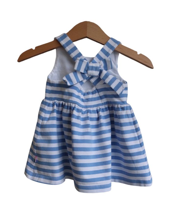 📃 description : Jolie robe rayée avec bretelles croisées et noeud 🎨 couleur : bleu, blanc 🆗 état : parfait état 📏 taille : 6 mois 🏁 motifs : rayé 🏷 composition : coton