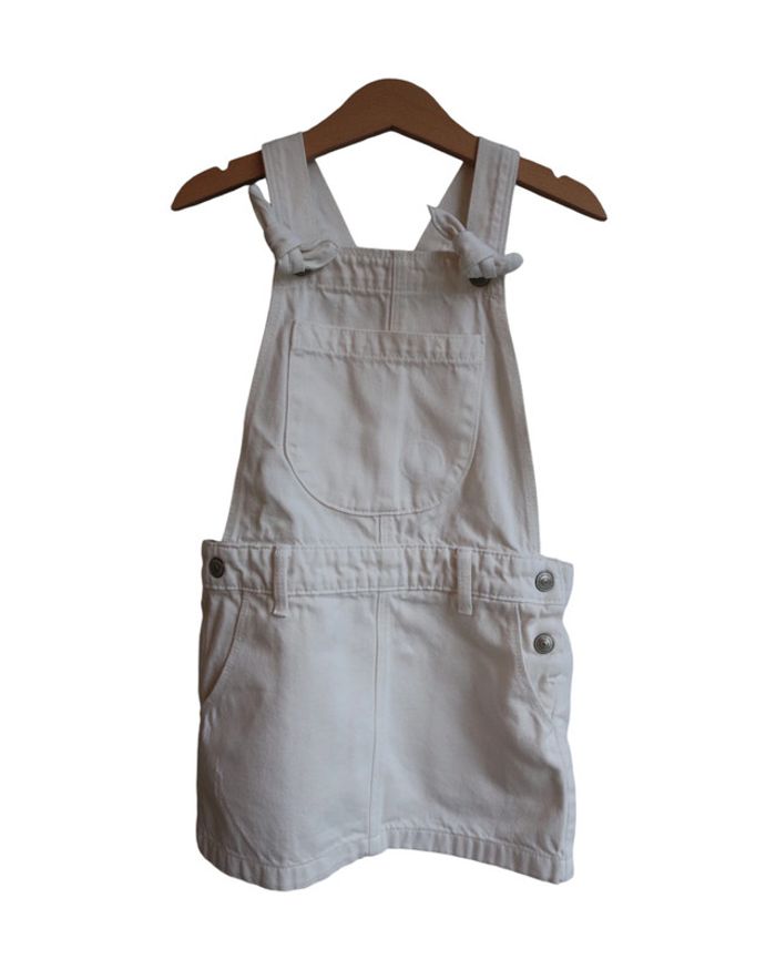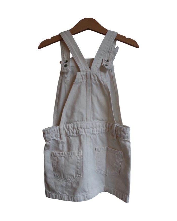 📃 description : Salopette jupe en jean, à porter été comme hiver avec des collants. Petits noeuds en haut des bretelles 🎨 couleur : blanc 🆗 état : parfait état 📏 taille : 5 ans 🏁 motifs : uni