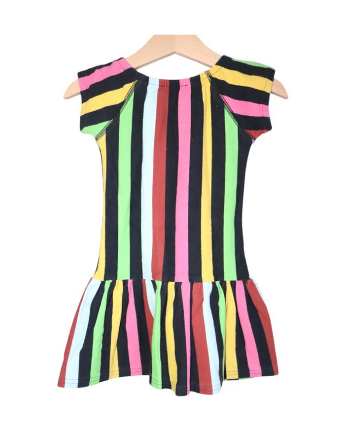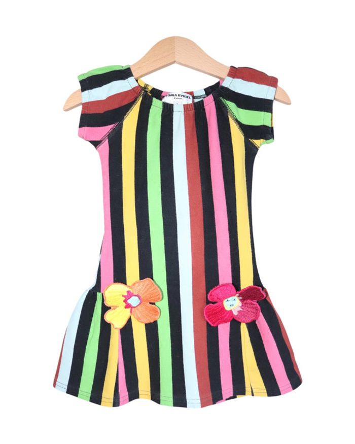 📃 description : Robes aux couleurs de la marque avec fleurs au niveau des hanches 🎨 couleur : noir, multicolore 🆗 état : parfait état 📏 taille : 2 ans 🏁 motifs : rayé 🏷 composition : coton