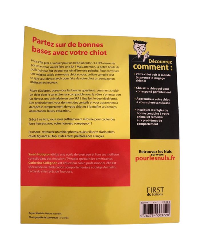 Avec les Nuls, vous et votre chiot formerez le duo parfait ! Partez sur de bonnes bases avec votre chiot Vous êtes prêt à craquer pour un bébé labrador ? La SPA ouvre ses portes et vous voulez faire une BA ? Mais attention, la petite boule de poils qui vous fait craquer est loin d'être une peluche. Pour construire une relation solide entre votre chiot et vous, ce livre compile tout ce que vous devez savoir pour faire de votre chiot un compagnon obéissant et heureux. Avant d'adopter, posez-vous les bonnes questions : comment choisir un chiot dont le caractère sera compatible avec le votre, s'orienter vers un éleveur, une animalerie ou une S.P.A. ? Une fois le duo idéal formé. Des professionnels vous donnent des conseils et vous apprennent à décoder le comportement de votre chiot et à identifier ses besoins. Alimentation, loisirs, éducation... Voici toutes les clés pour faire de votre chiot un compagnon sociable et facile à vivre, bien éduqué et équilibré mais aussi joueur et malicieux ! Grâce à ce livre, vous serez suffisamment informé pour couler des jours heureux avec votre nouveau compagnon !