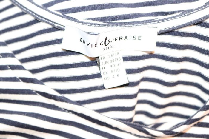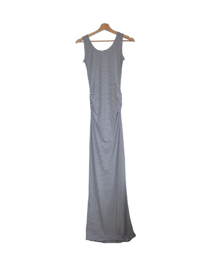 📃 description : Robe longue sans manches avec élargissement au niveau du ventre 🎨 couleur : bleu, blanc 🆗 état : parfait état 📏 taille : 36/38 🏁 motifs : marinière