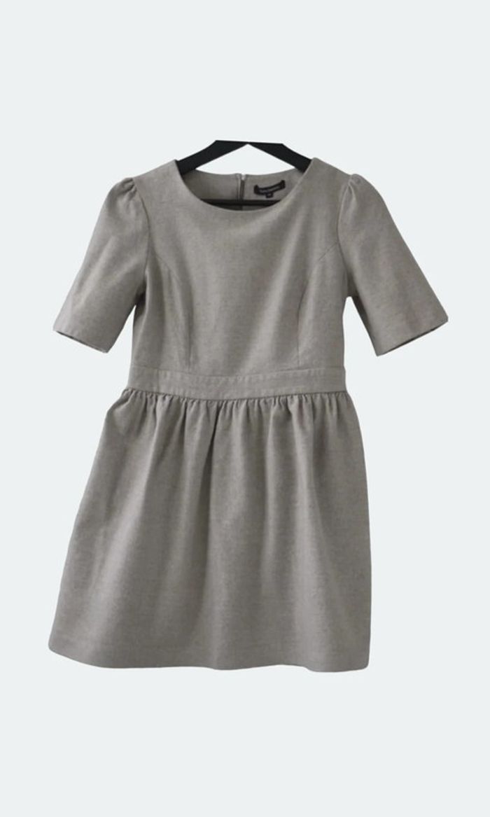 📃 description : Jolie robe courte 🎨 couleur : beige:gris, noir, bleu 🆗 état : parfait état 📏 taille : 40 🏁 motifs : uni 🏷 composition : 90% laine vierge, 10% cachemire