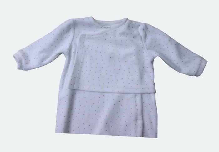 📃 description : pyjama bébé fille 🎨 couleur : blanc et or 🆗 état : parfait état 📏 taille : 9 mois 🏁 motifs : a petits pois dorés