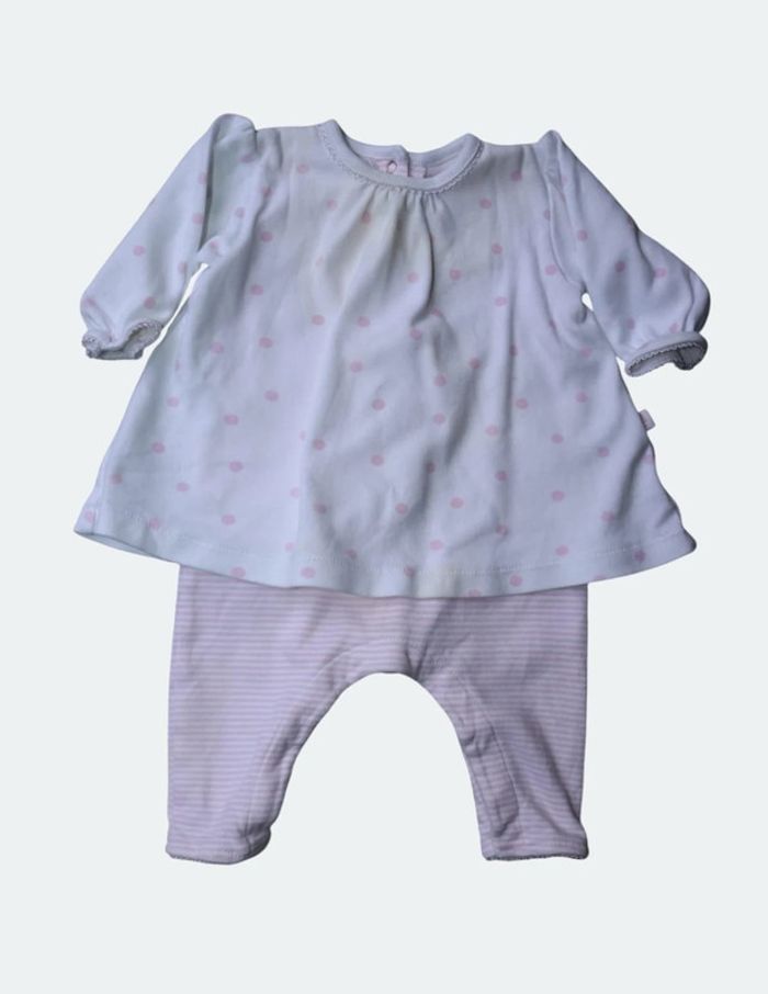 🎨 couleur : rose, blanc 🆗 état : tache visible en photo 3 📏 taille : 1 mois 🏁 motifs : rayé, petits pois 🏷 composition : coton