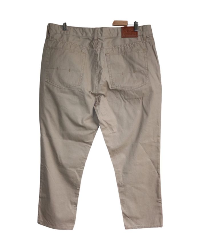 📃 description : Ce pantalon Polo Ralph Lauren beige présente une coupe classique et décontractée. Conçu dans un tissu de qualité, il arbore des poches avant et arrière fonctionnelles et des finitions soignées, typiques de la marque. Polyvalent, il peut être porté dans un style casual ou légèrement habillé. 🎨 couleur : beige 🆗 état : parfait état, a été modifié en bas par un ourlet. 📏 taille : 38/34, longueur entre-jambe jusqu'en bas : 96 cm 🏁 motifs : uni 🏷 composition : coton