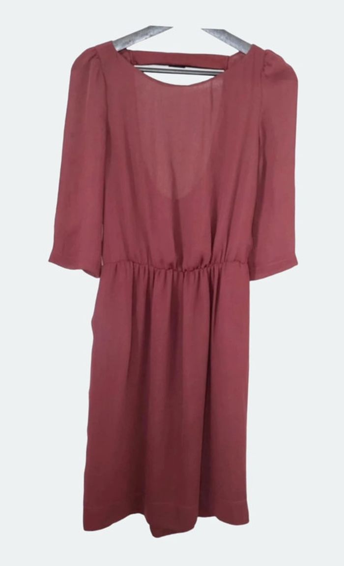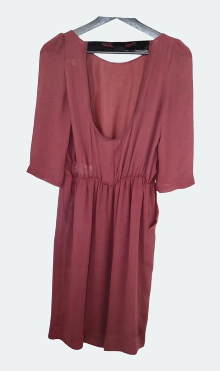 📃 description : Jolie robe avec beau décolleté dans le dos, petite transparence sur le haut du dos et petit noeud en velours noir 🎨 couleur : bordeaux, noir 🆗 état : neuf sans étiquette 📏 taille : 38 🏁 motifs : uni 🏷 composition : 100% polyester