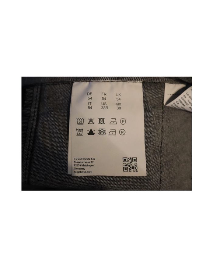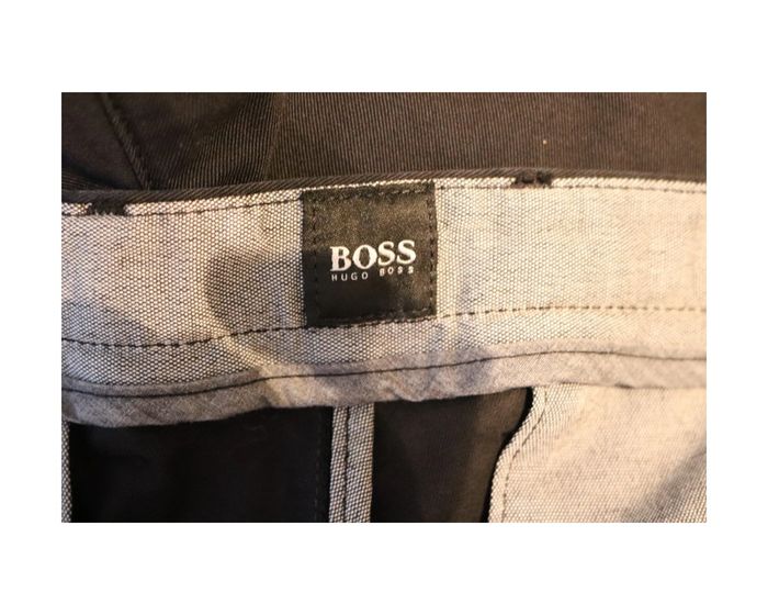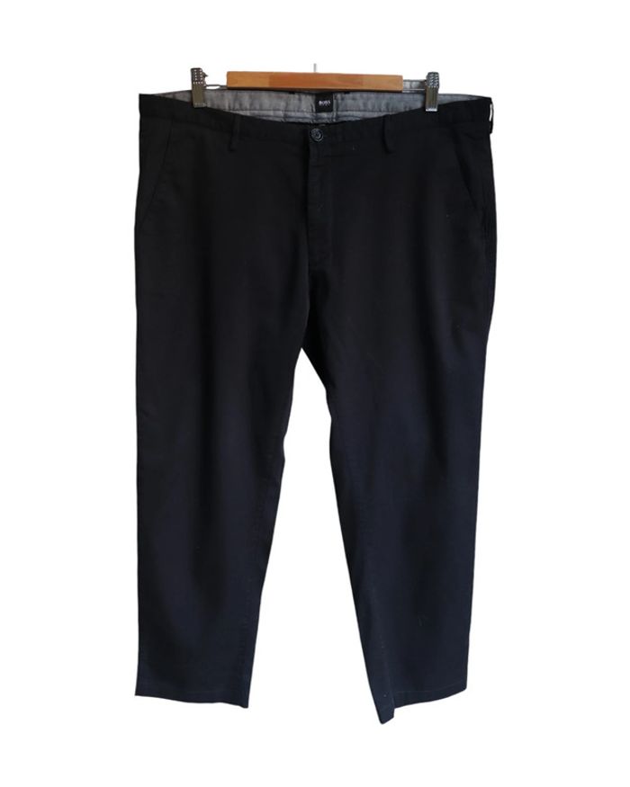 📃 description : beau pantalon chino. Le pantalon a été raccourci par la couturière Hugo Boss pour un ourlet plus court 🎨 couleur : noir 🆗 état : parfait état, a été modifié par le bas par un ourlet 📏 taille : 54, taille entre jambe jusqu'au bas: 68 cm 🏁 motifs : uni 🏷 composition : 97% coton, 3% elasthanne